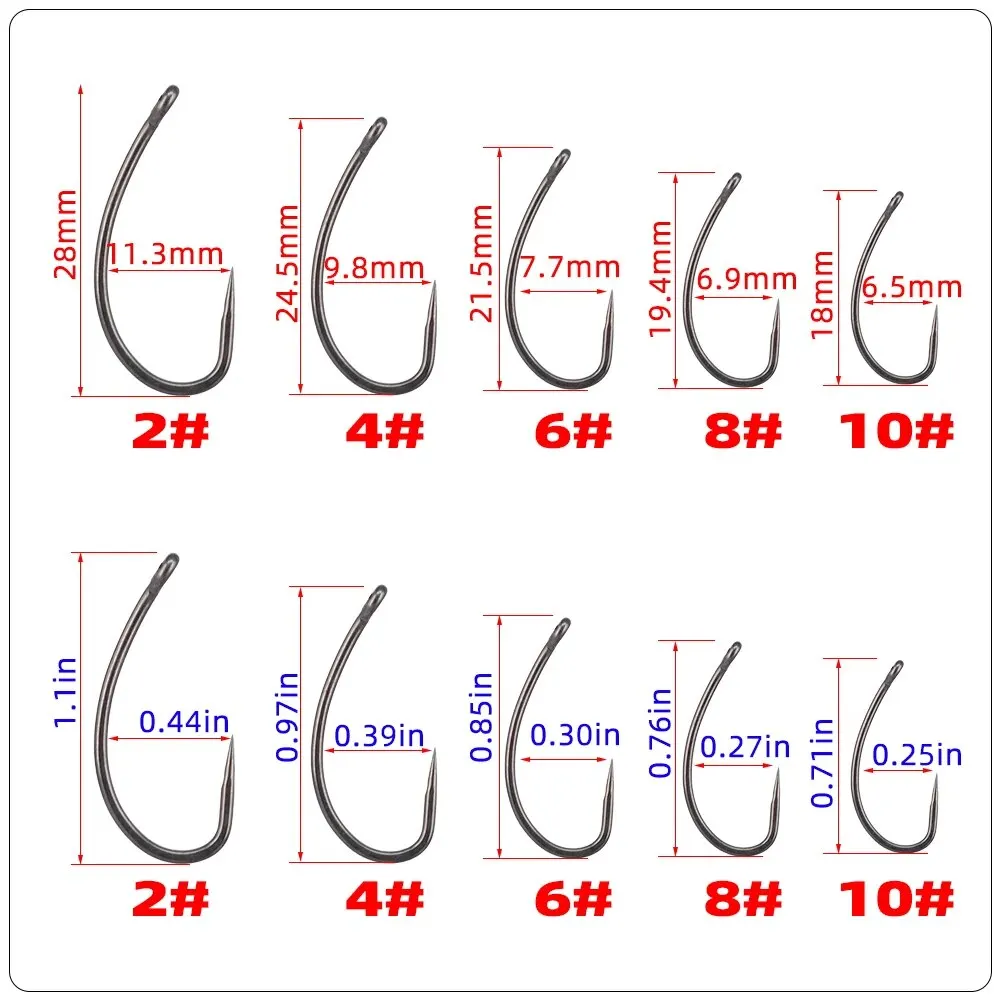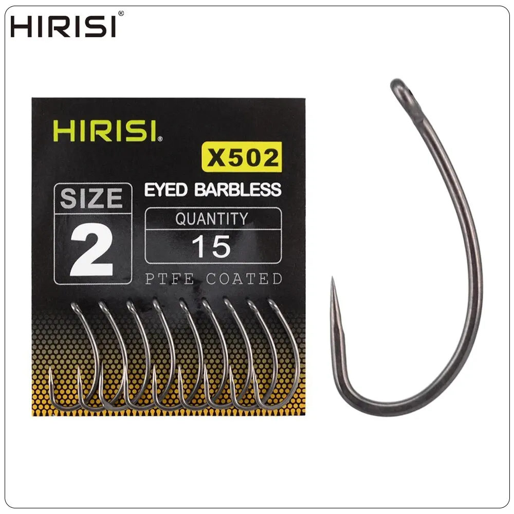 Anzuelo sin púas de acero inoxidable con alto contenido de carbono recubierto de PTFE, 15 Uds., con ojo, aparejos de pesca de carpa X502