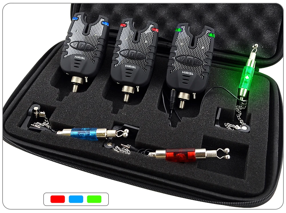 Hirisi 3 carpa pesca mordedura alarma y swinger conjunto resistente al agua azul LED pesca swingers pescado mordedura indicador