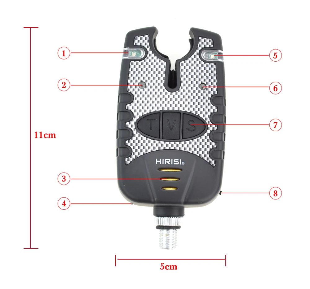 1) Luz LED roja y verde para indicar la caída y la espalda del hilo de pescar.