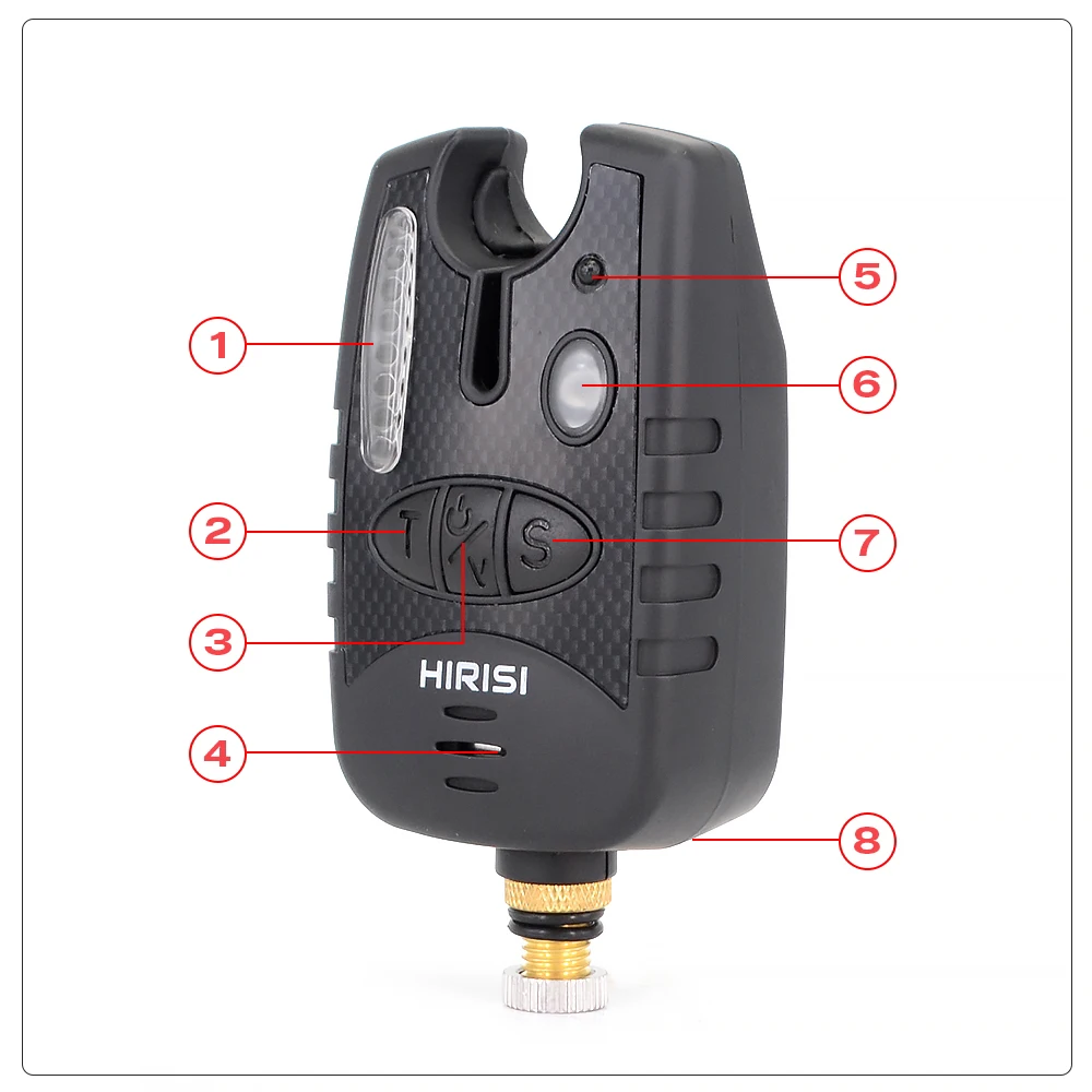 6. Botón de función, pulsación corta para encender/apagar la luz nocturna, pulsación larga para encender/apagar la banda de 8 luces LED