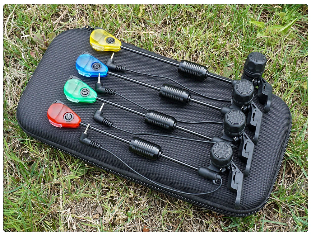 Alarma de picadura de pesca con luz LED e indicador de oscilación, equipo de pesca de carpa resistente al agua B2036 para pesca nocturna con estuche, 4 Uds.