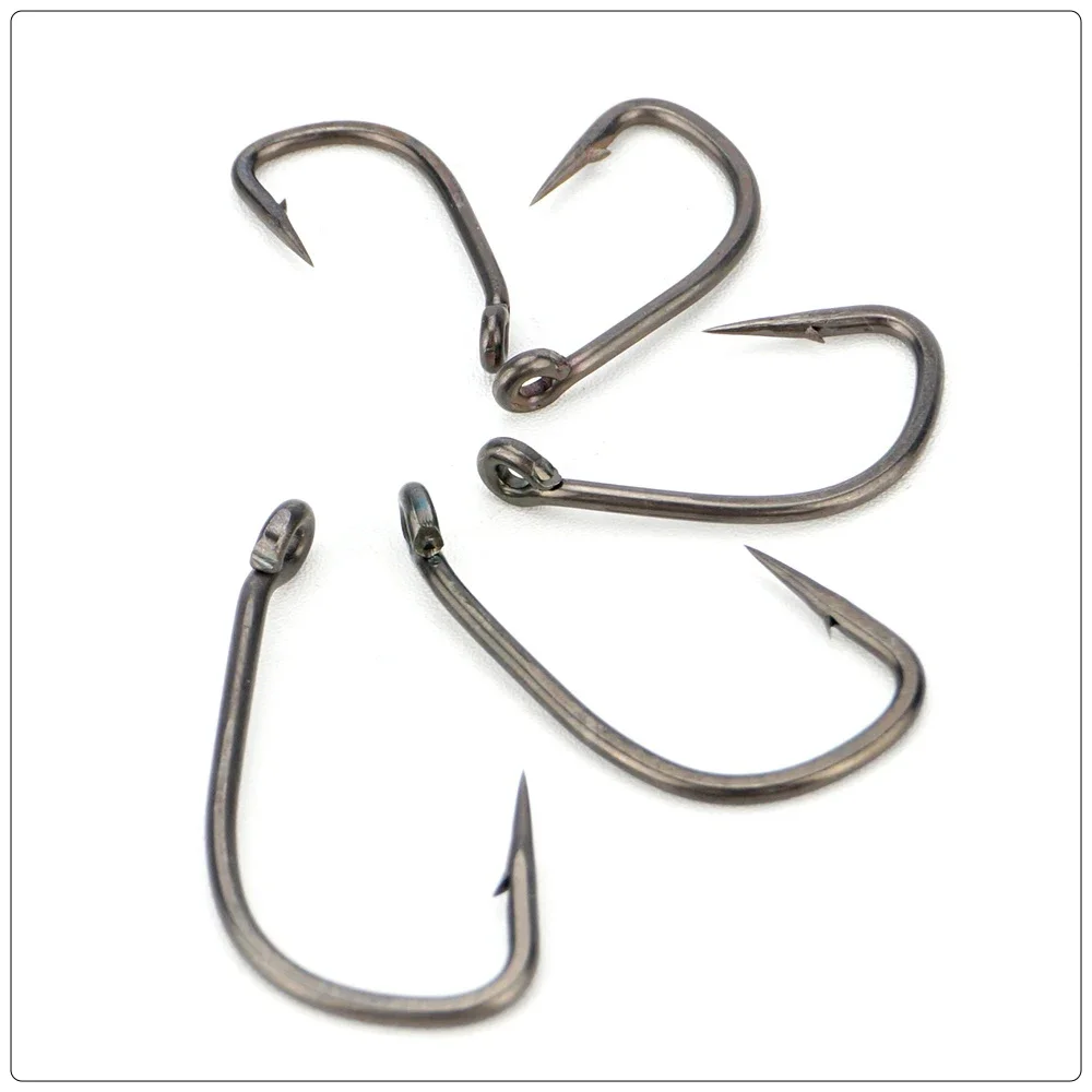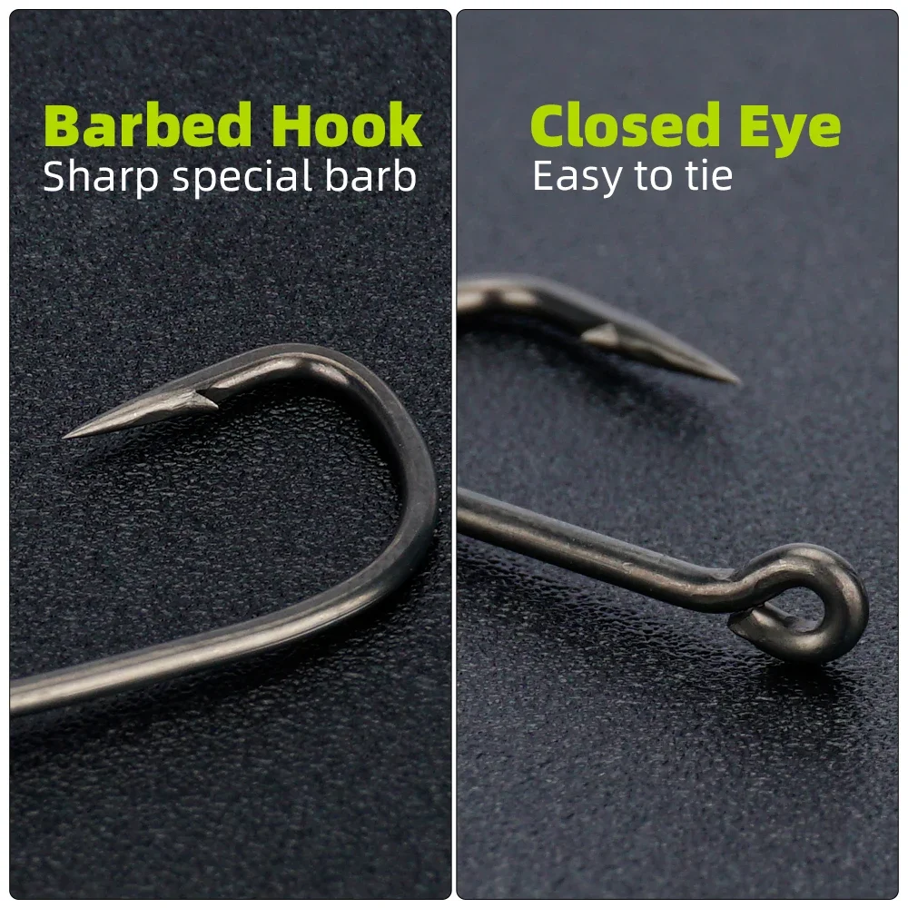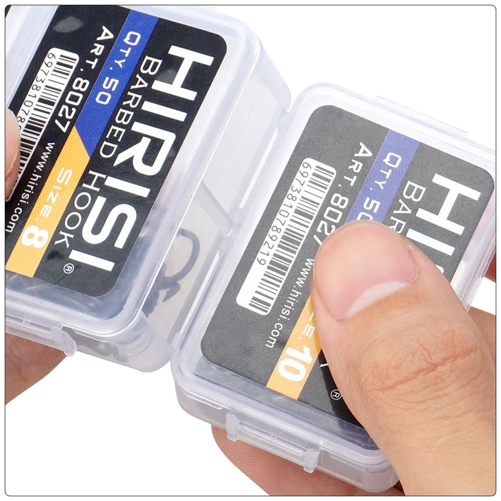 50 Uds. Micro anzuelo con púas de acero inoxidable de alto carbono recubierto de PTFE con ojo 8027 accesorios de pesca caja de plástico empalme