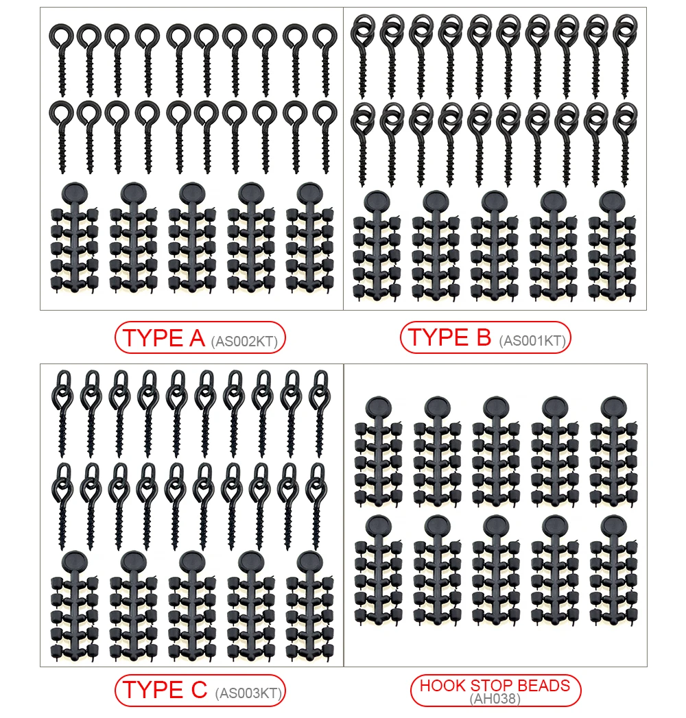 5 tarjetas=50 perlas de gancho piezas + 20 tornillos de cebo piezas AS002