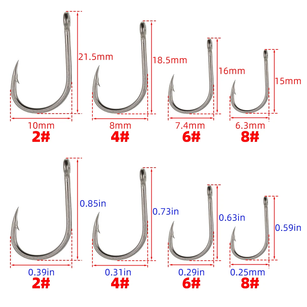 1. Nuestros anzuelos están hechos de acero al carbono fuerte, Este material también tiene buena resistencia al óxido tanto en agua dulce como en agua de mar.