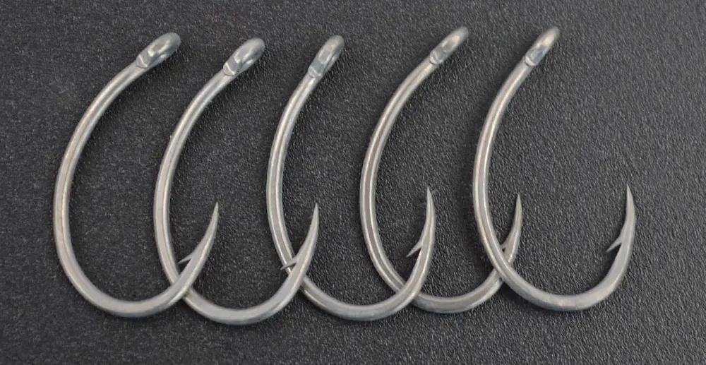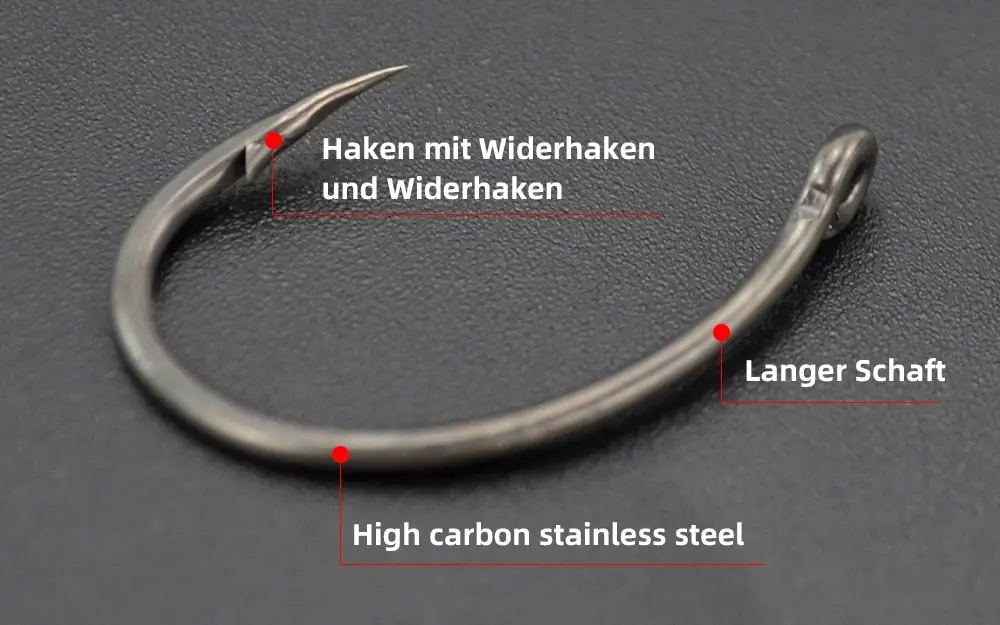 • Acero de alta carbono :Hecho de acero de alta carbono, estos anzuelos son duraderos y resistentes, ideales para la pesca de carpas y otros peces.