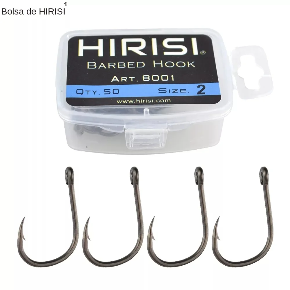 Cantidad 50 piezasDescripción:-Tamaño disponible 2 #, #4, 6 #, 8 #-Hecho con acero inoxidable de alto carbono-Gancho de púas-50 piezas por caja-Embalaje en caja de plástico
