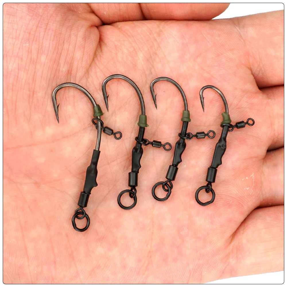 Equipos de pesca de carpa Ronnie Rig Hook Rig Set 4 Uds Kits de aparejos terminales listos para usar, accesorios de equipo de pesca
