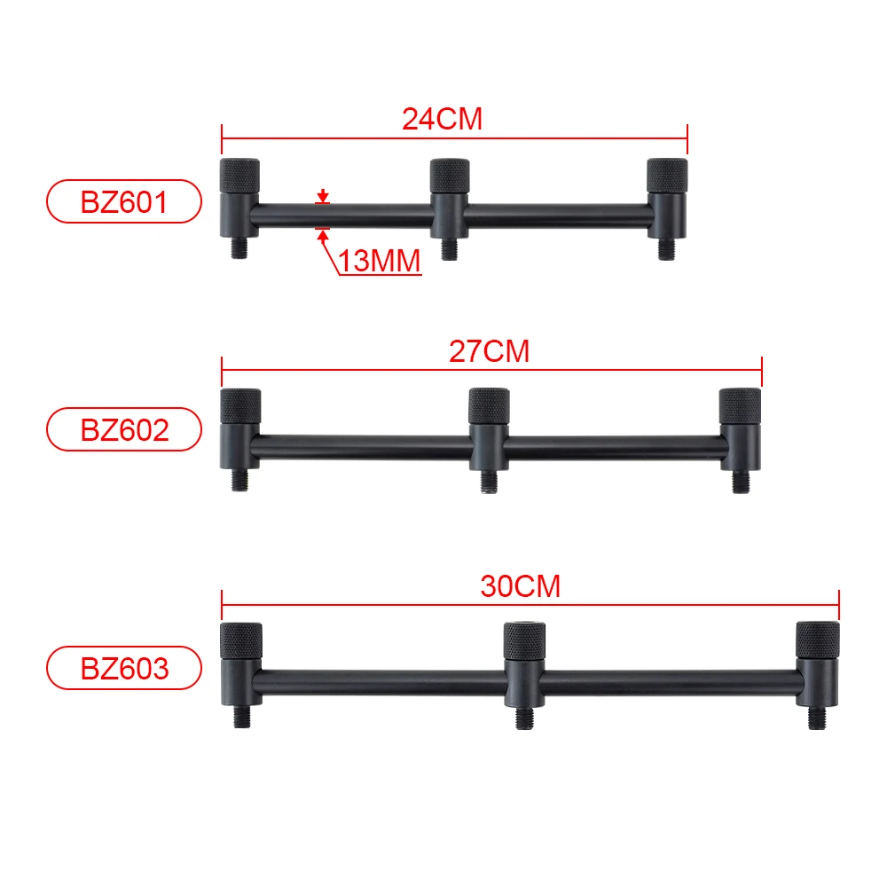 Cantidad: 1 piezasCaracterística:-Barra de zumbido para 3 varillas-Longitud: BZ601:24cm, BZ602:27cm, BZ603:30cm-Diámetro: 12mm-Fabricado con aleación de aluminio-Hilo estándar británico 3/8