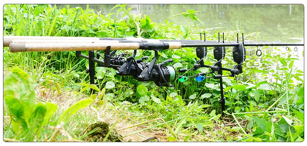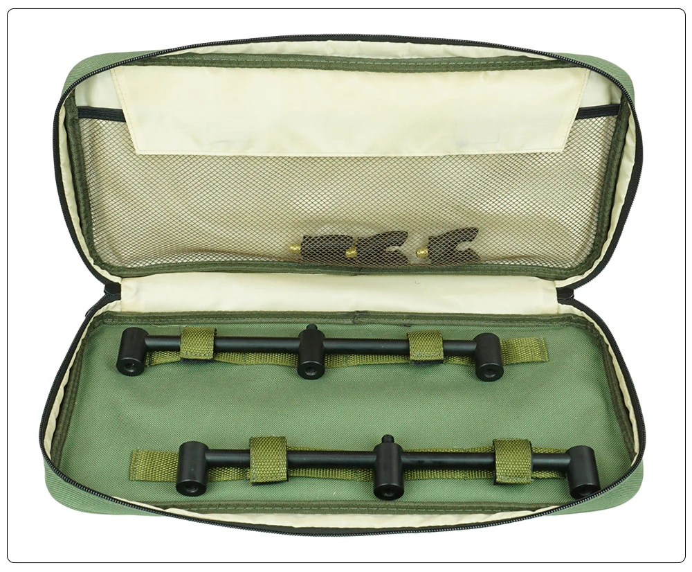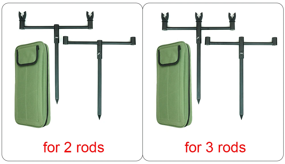 Juego de cápsulas para caña de pescar de carpa de aleación de aluminio para 3 cañas con 2 palos bancarios, 2 barras de zumbido y bolsa de transporte, accesorios de pesca