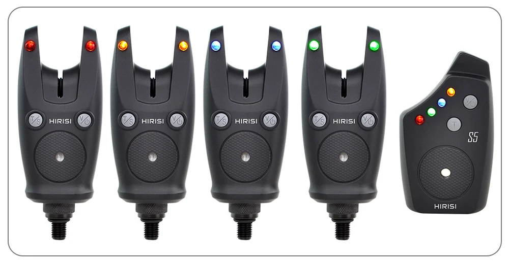 3. rojo/verde/azul/amarillo luces LED coinciden con 4 alarmas de pesca