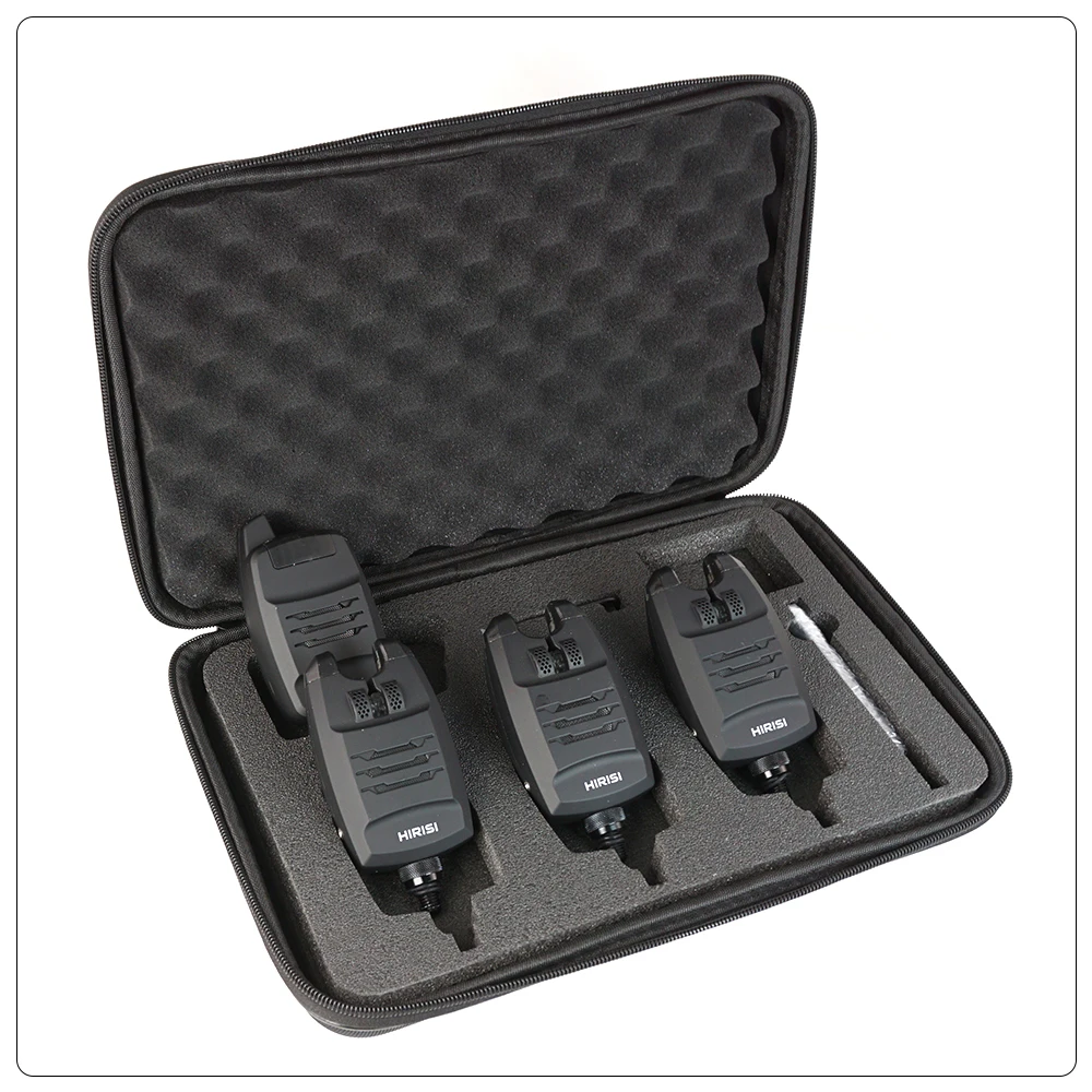 Fabricado con ABS robusto, el juego de alarma de pesca de carpa Hirisi 1+4 resiste la naturaleza.Su diseño inalámbrico combinado con un sensor antirrobo (intento de robo y pitido) ofrece a los pescadores lanzamientos sin preocupaciones y protección de la caña.