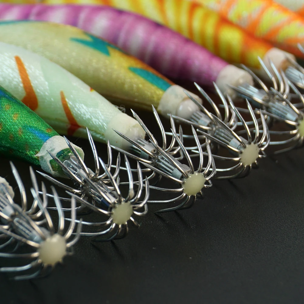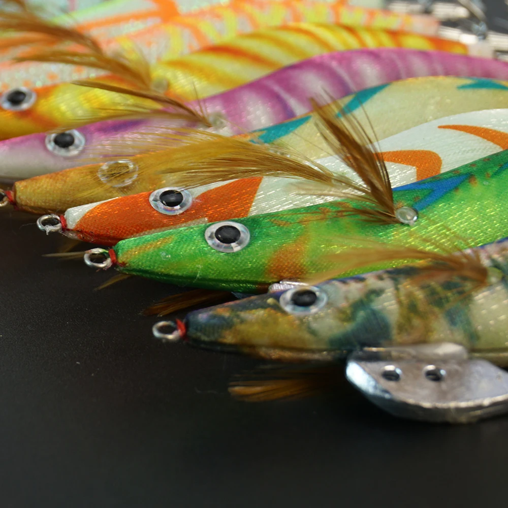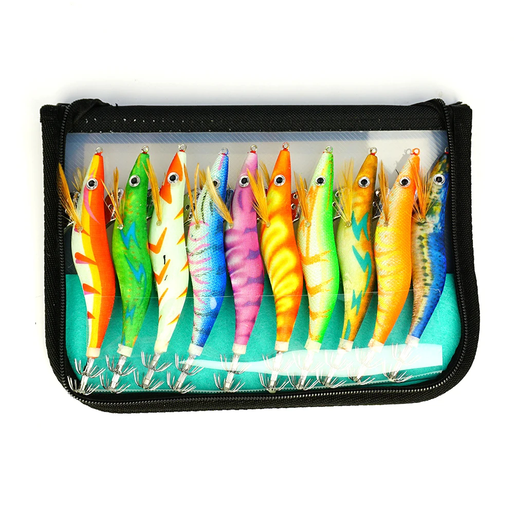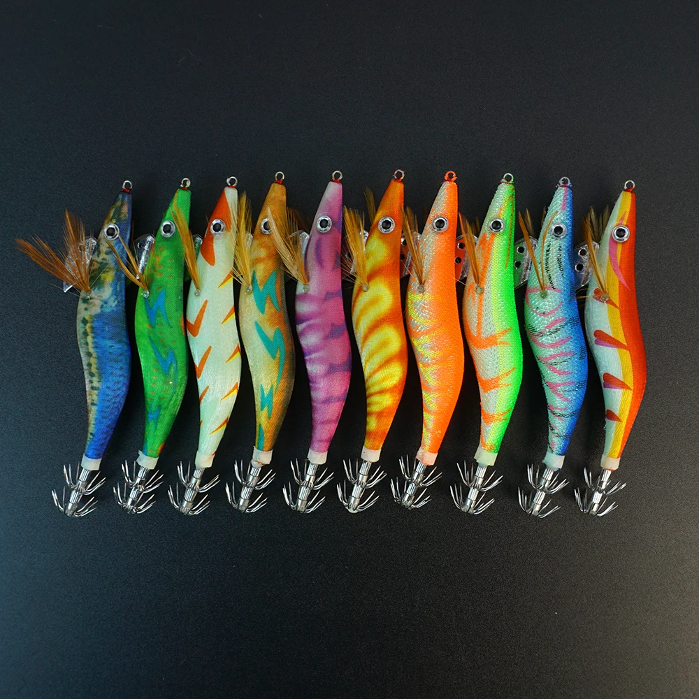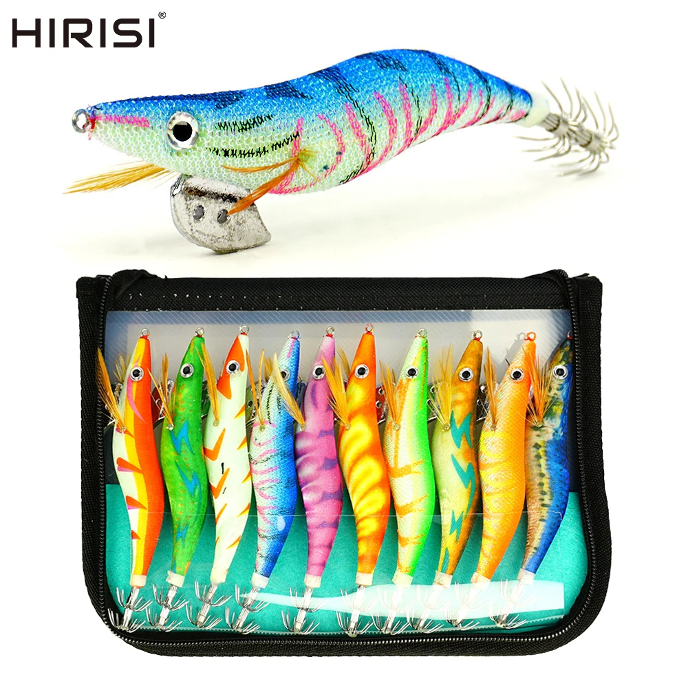 Hirisi Juego de plantillas de calamar luminosas de 10 piezas: diseño de camarones de madera para pulpo, sepia y camarones, señuelos de pesca de agua salada