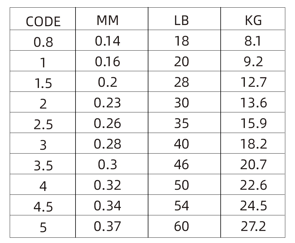 Número de línea 1.5#: 0,20 mm / 28 lb / 12,7 kg