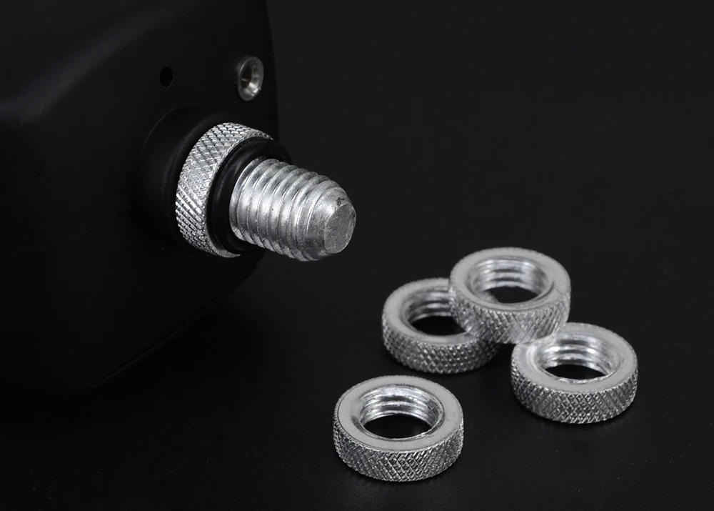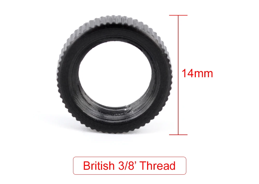 - La rosca británica estándar de 3/8 se adapta a todas las alarmas de mordida y barras de zumbido.