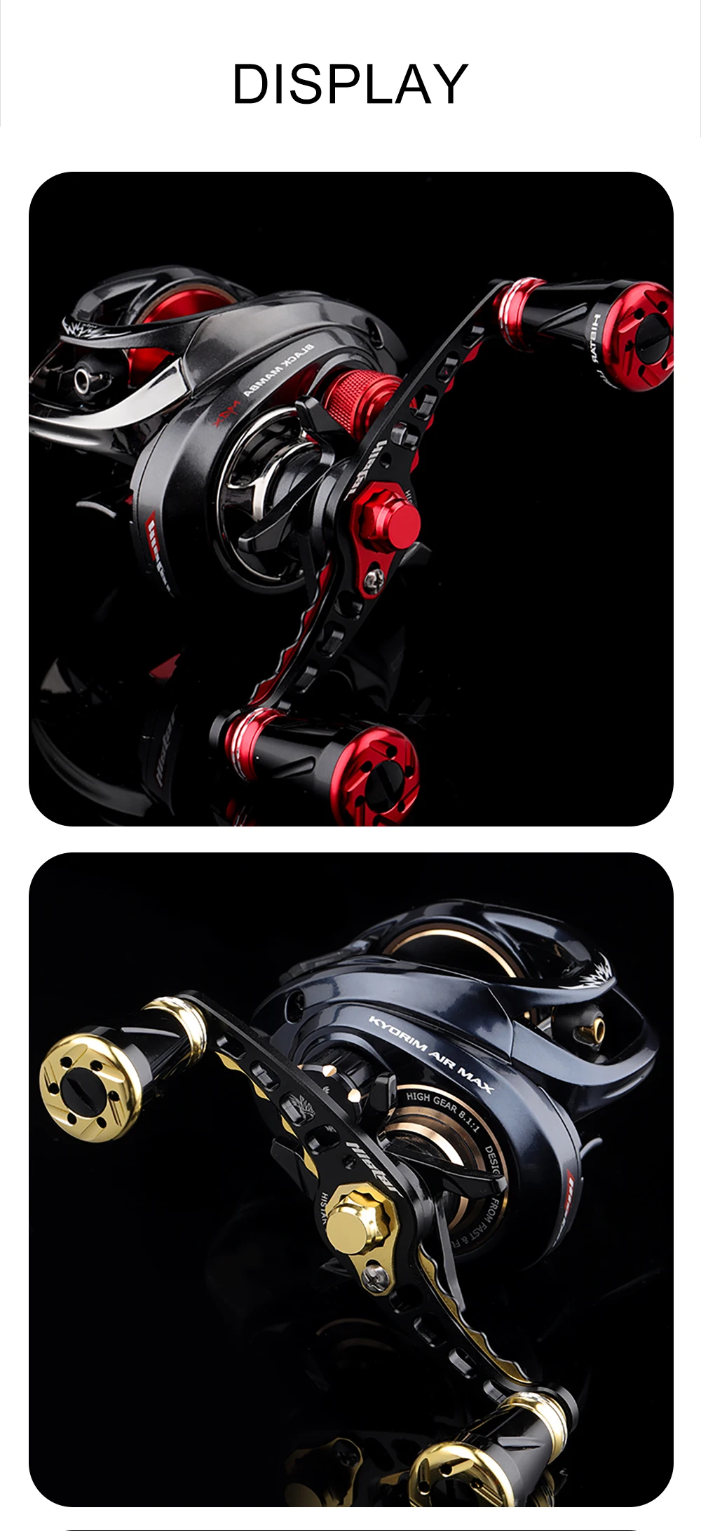 Tenemos 3 colores de este balancín de pesca con carrete Baitcasting: dorado pistola/negro dorado/negro rojo. ¡Así que elige cuidadosamente lo que necesitas!