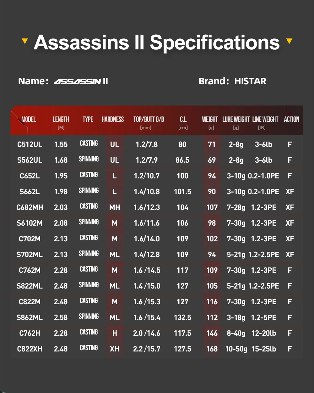 Histar Assassins II 1,55-1.68 m BFS DKK-A Ti guías de aleación 40 + 30T Toray cinta de carbono acción rápida caña de pescar de dureza UL-MH