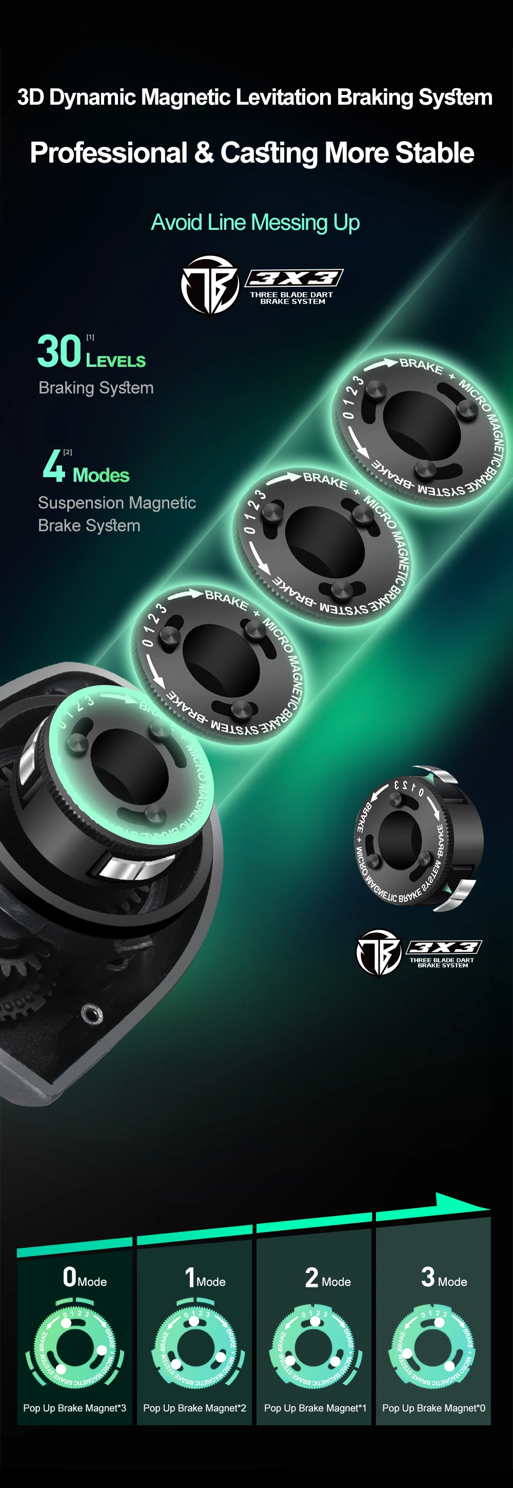 Sistema de frenado de levitación magnética dinámica 3.3D: el imán de freno se suspende automáticamente de acuerdo con la velocidad de rotación del carrete