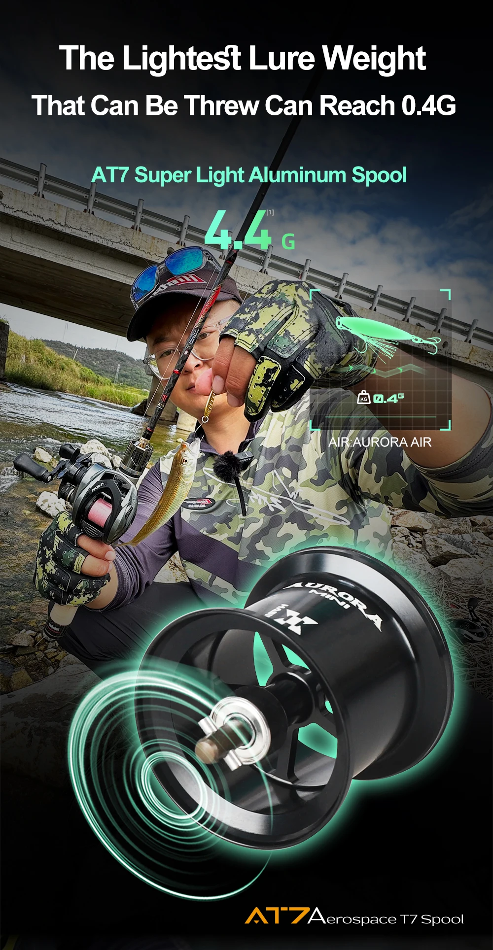 Peso del carrete ultraligero 1.115G, carrete de aluminio súper ligero 4,4G AT7.