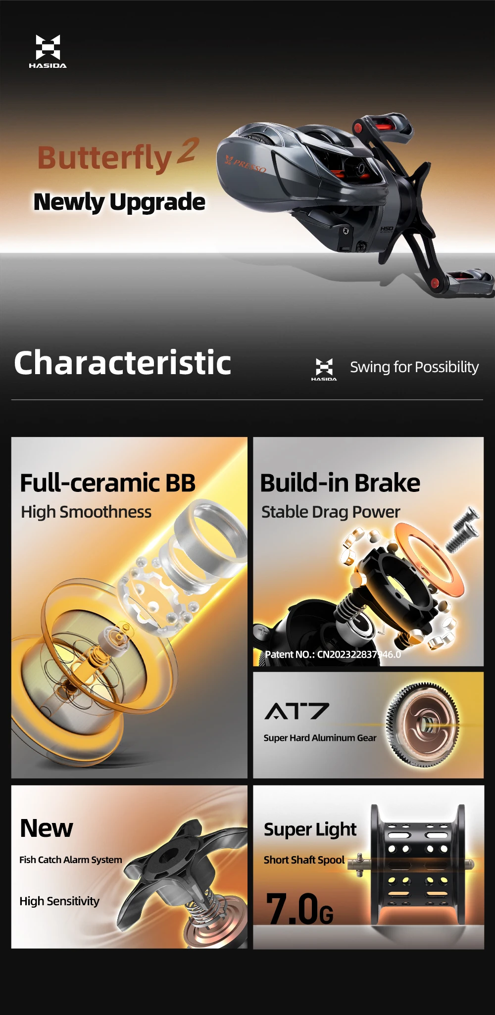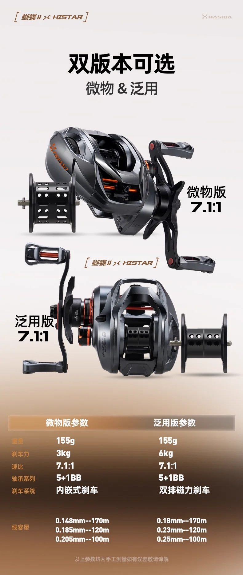HISTAR Butterfly II BFS Y Estándar 7,1:1 Alta Ratio 3 Rodamientos de Bolas 7g Carrete de Luz 155g Carrete de Pesca Baitcasting