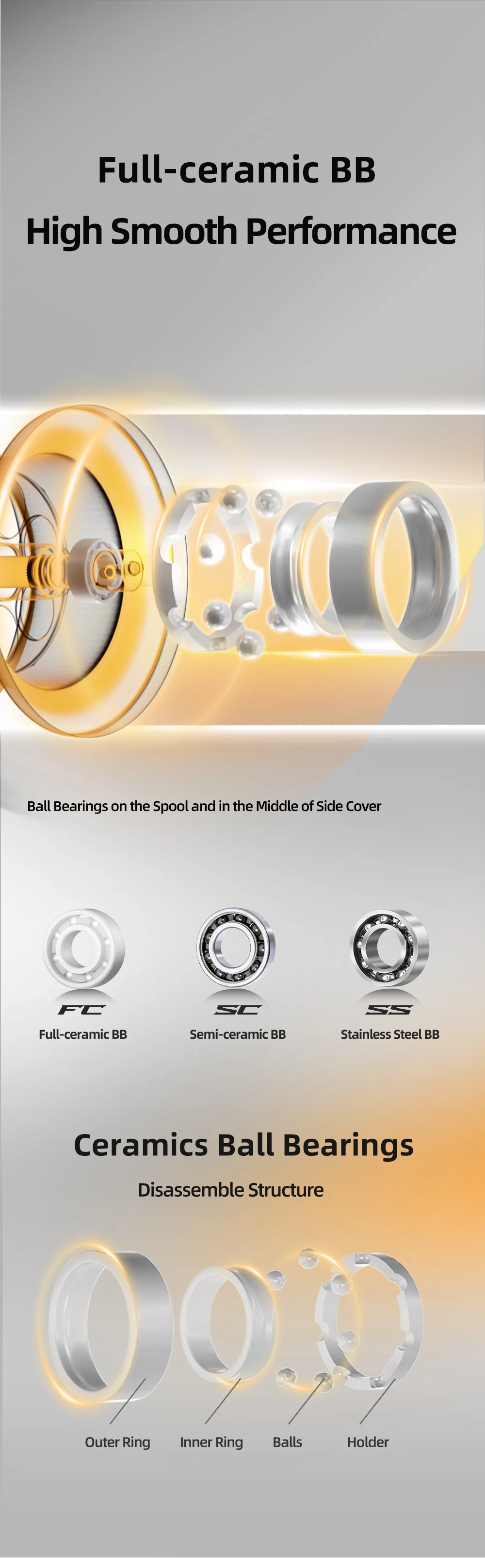 Rodamientos semimerámicos para mayor durabilidad bajo presión.