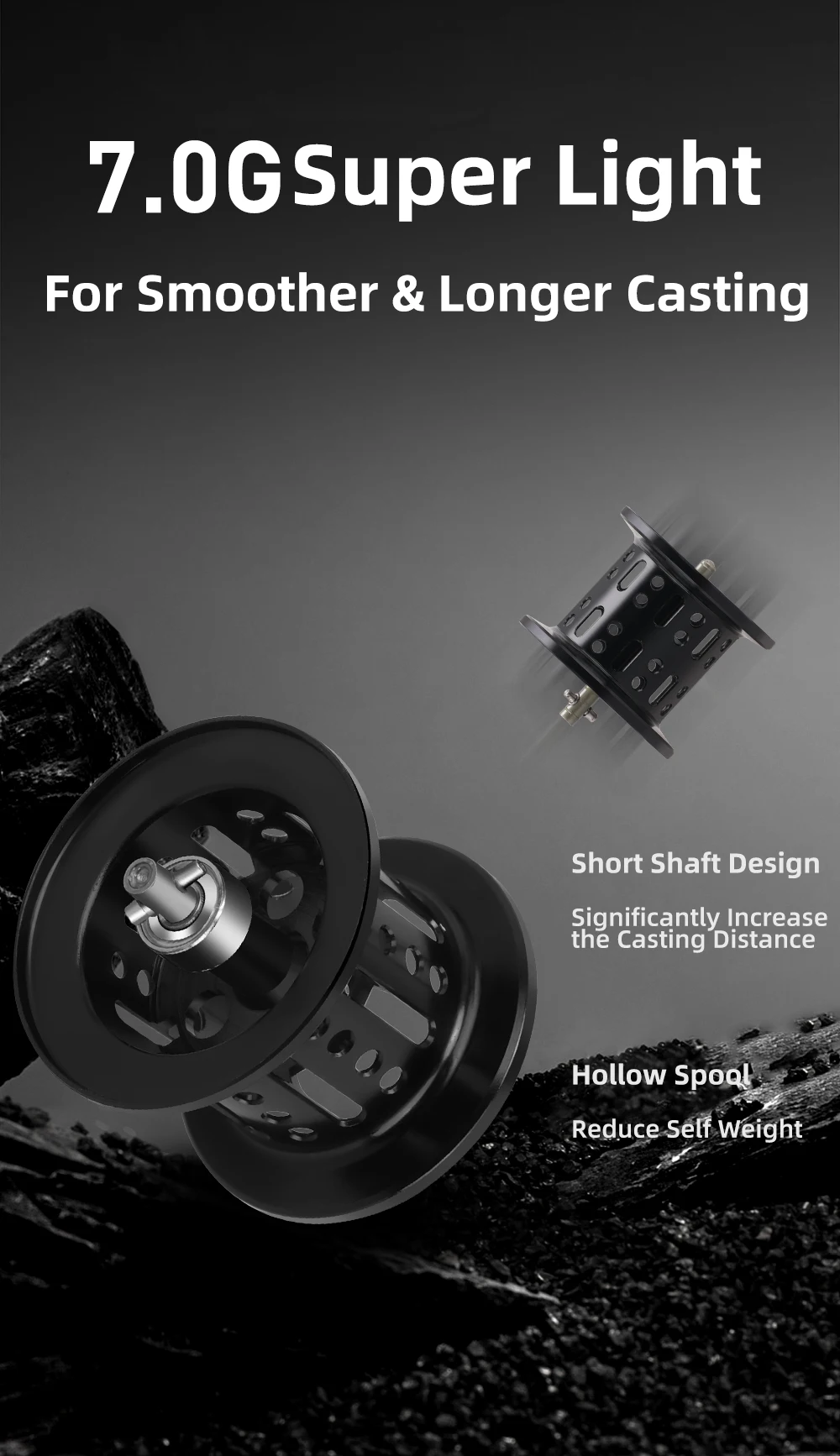 Carrete hueco de eje corto ultraligero (7,0 g)
