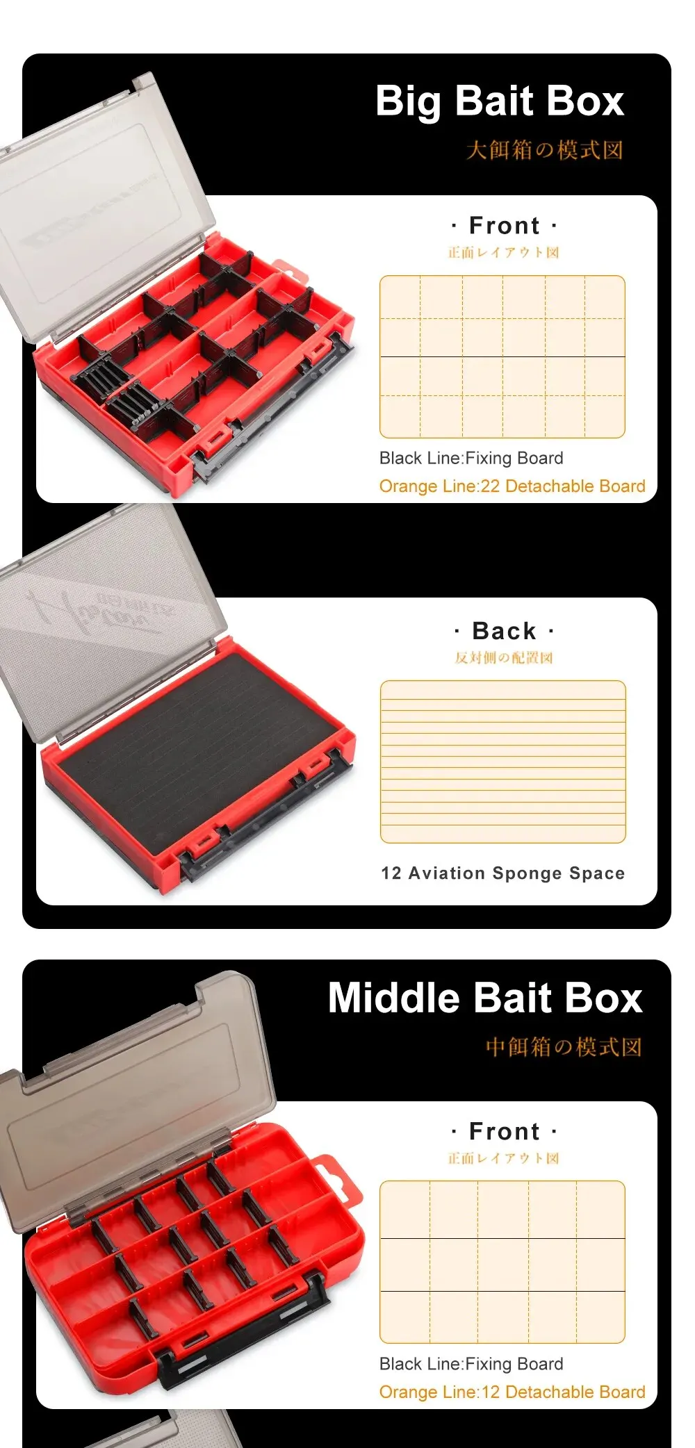 • Diseño de doble cara:Con un diseño de doble cara, esta caja de aparejos proporciona un amplio espacio para almacenar sus elementos esenciales de pesca, mejorando su experiencia de pesca.