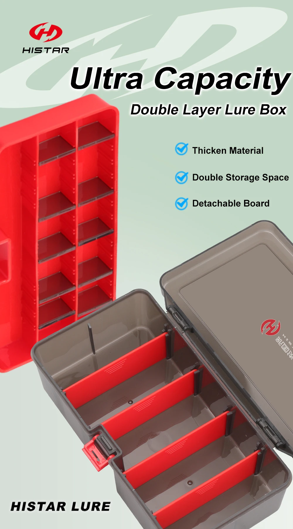 • Diseño de doble capa:La caja de aparejos de pesca HISTAR presenta un diseño de doble capa, que proporciona un amplio espacio de almacenamiento para su equipo de pesca. Esta característica garantiza que sus artículos estén organizados y sean fácilmente accesibles.