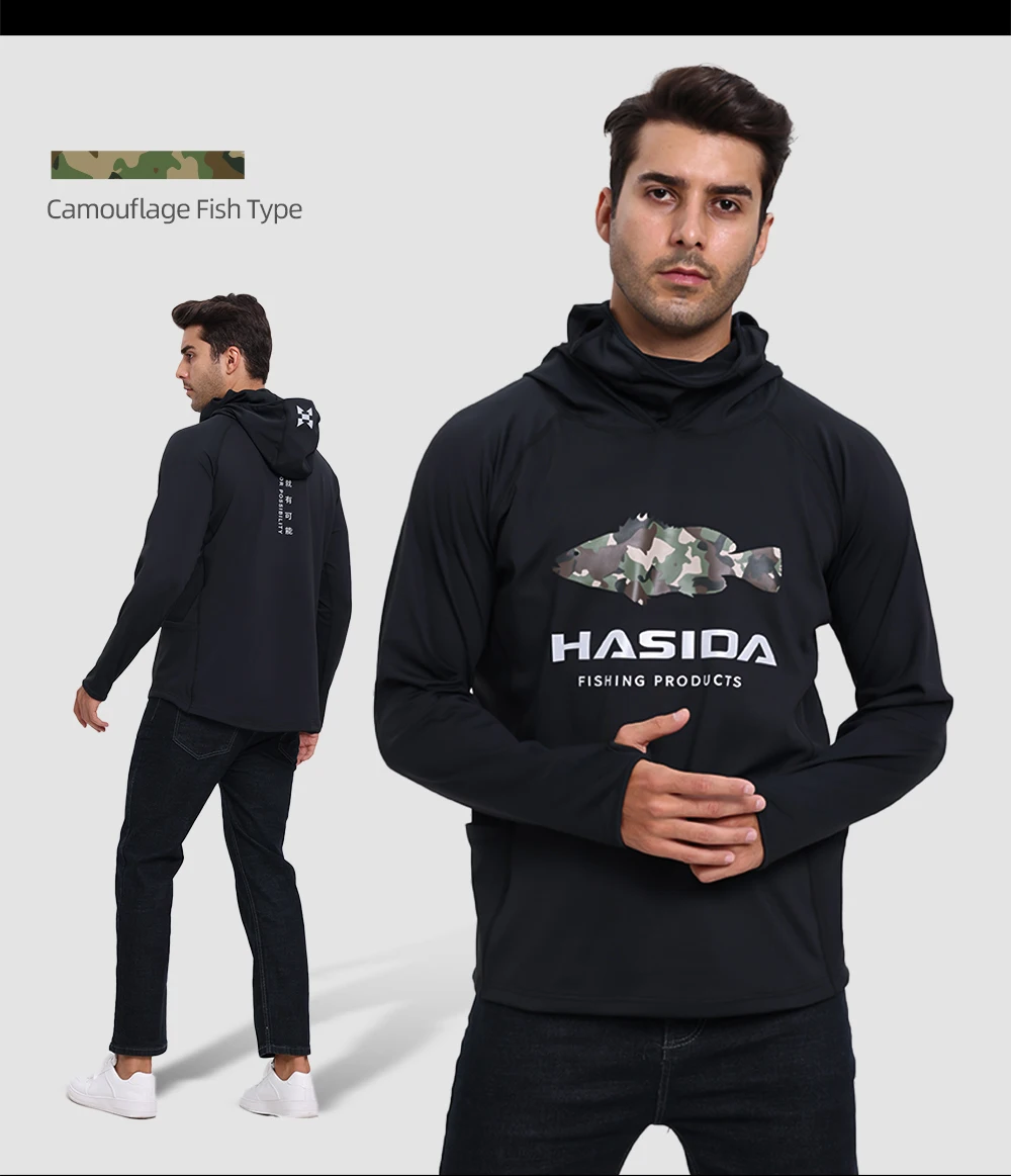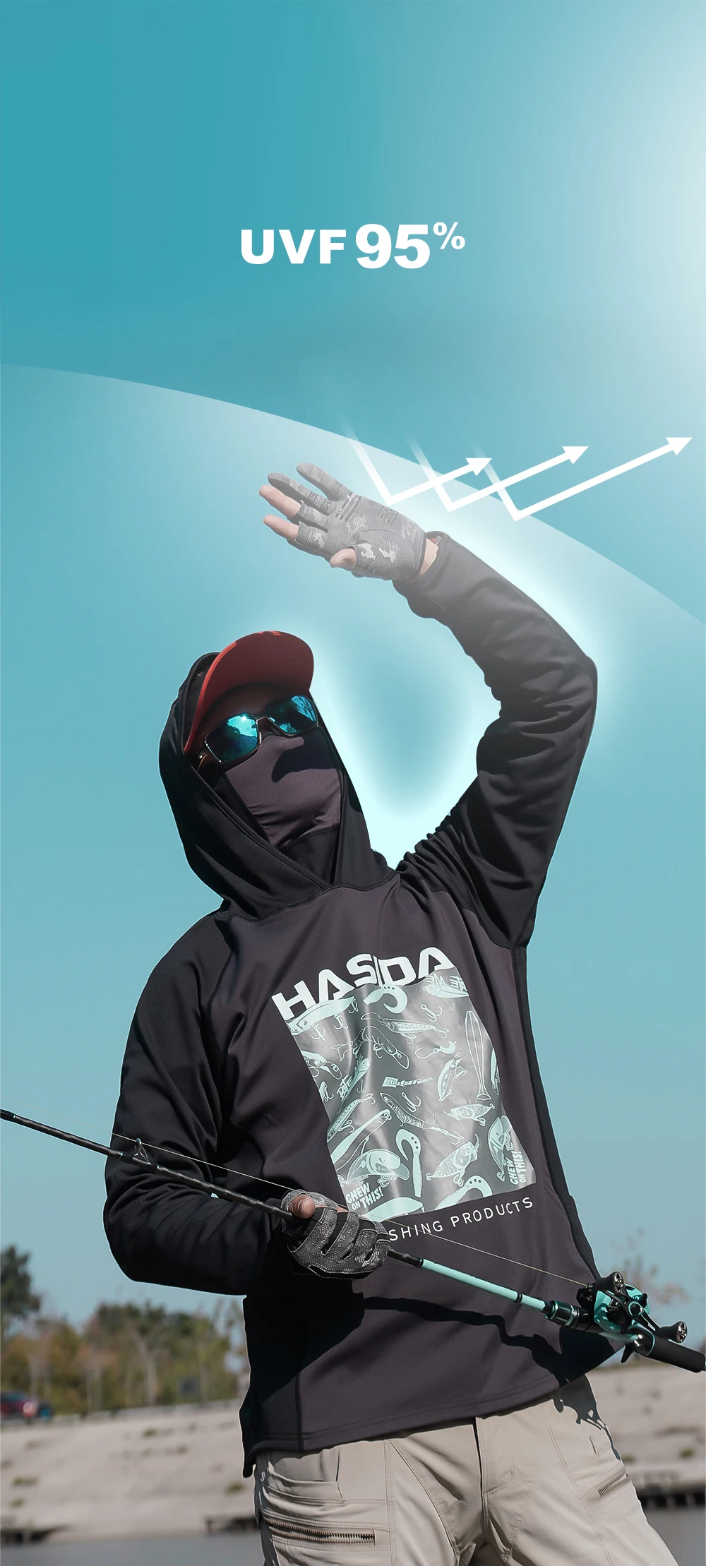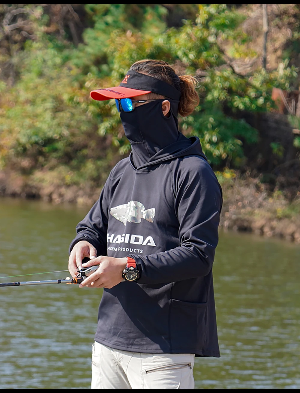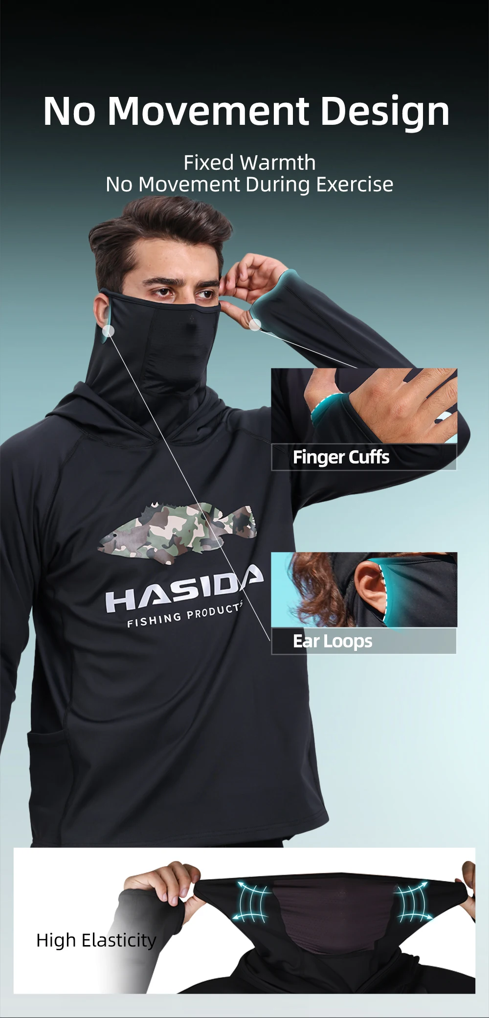 3D corte Full Face Cover UVF 95% cierre de calor bolsillo grande dedos puños lana chaqueta de pesca sudadera tela