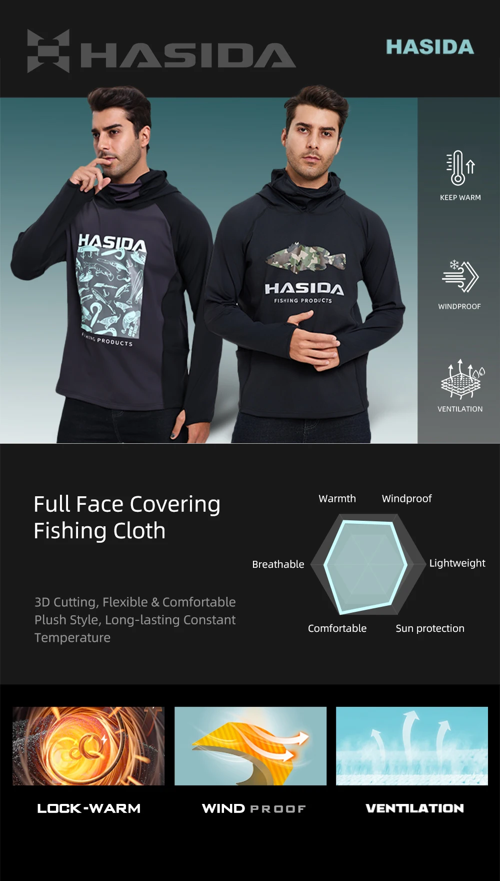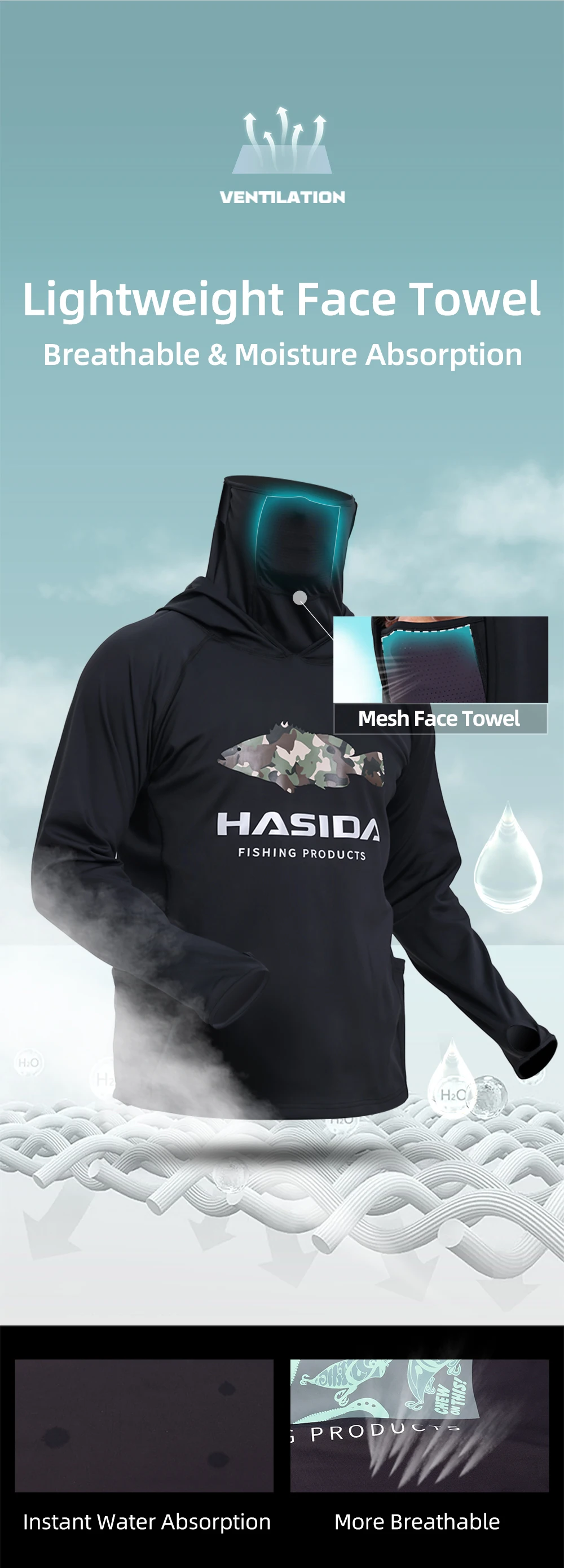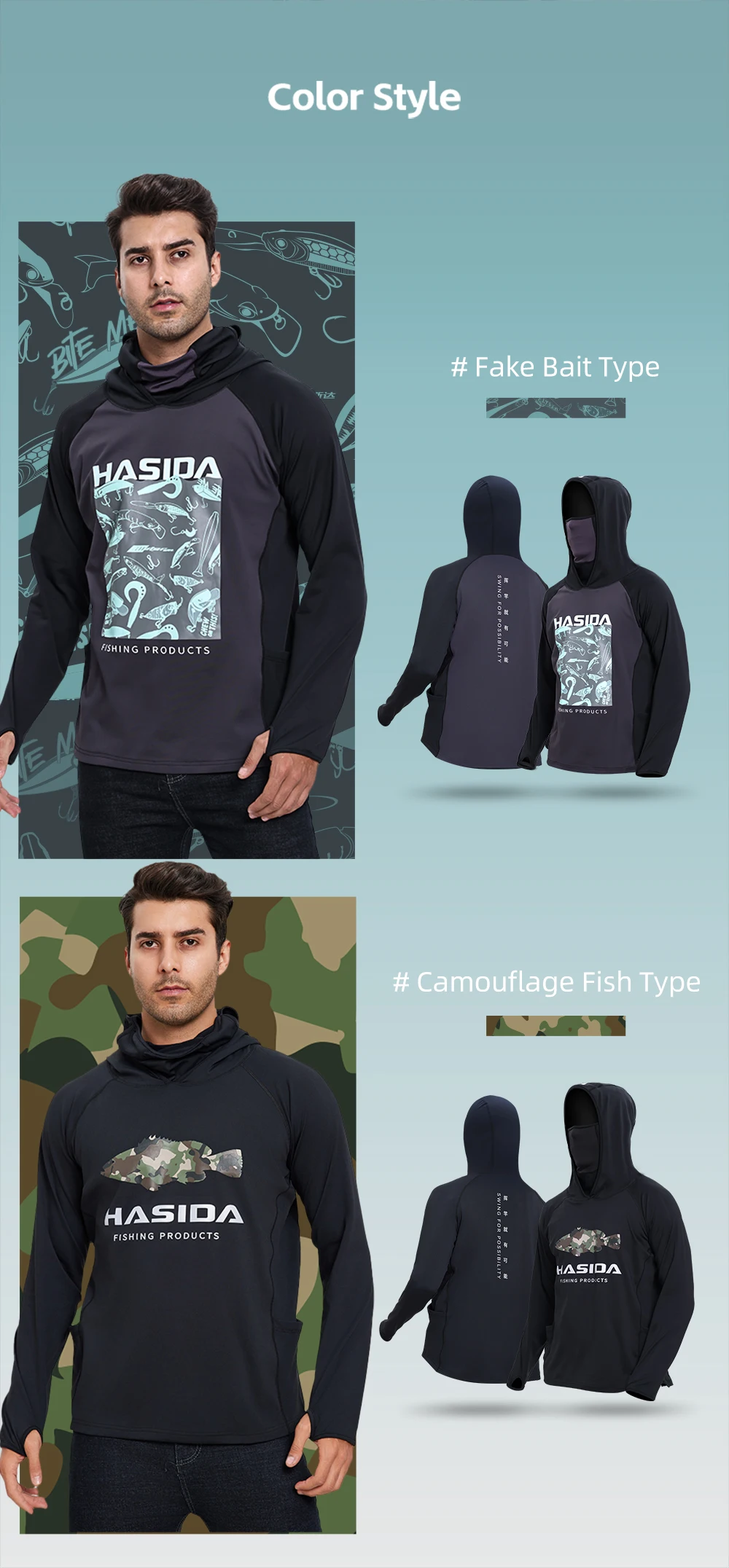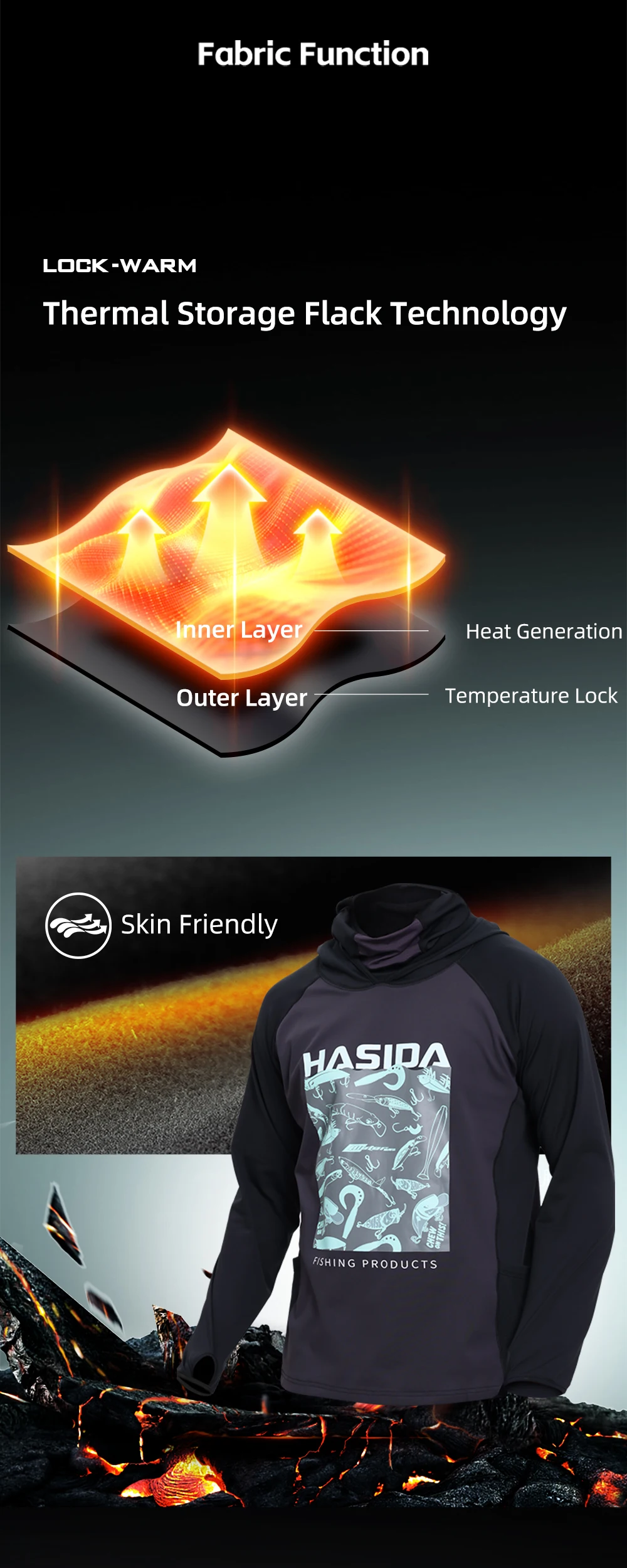 3D corte Full Face Cover UVF 95% cierre de calor bolsillo grande dedos puños lana chaqueta de pesca sudadera tela
