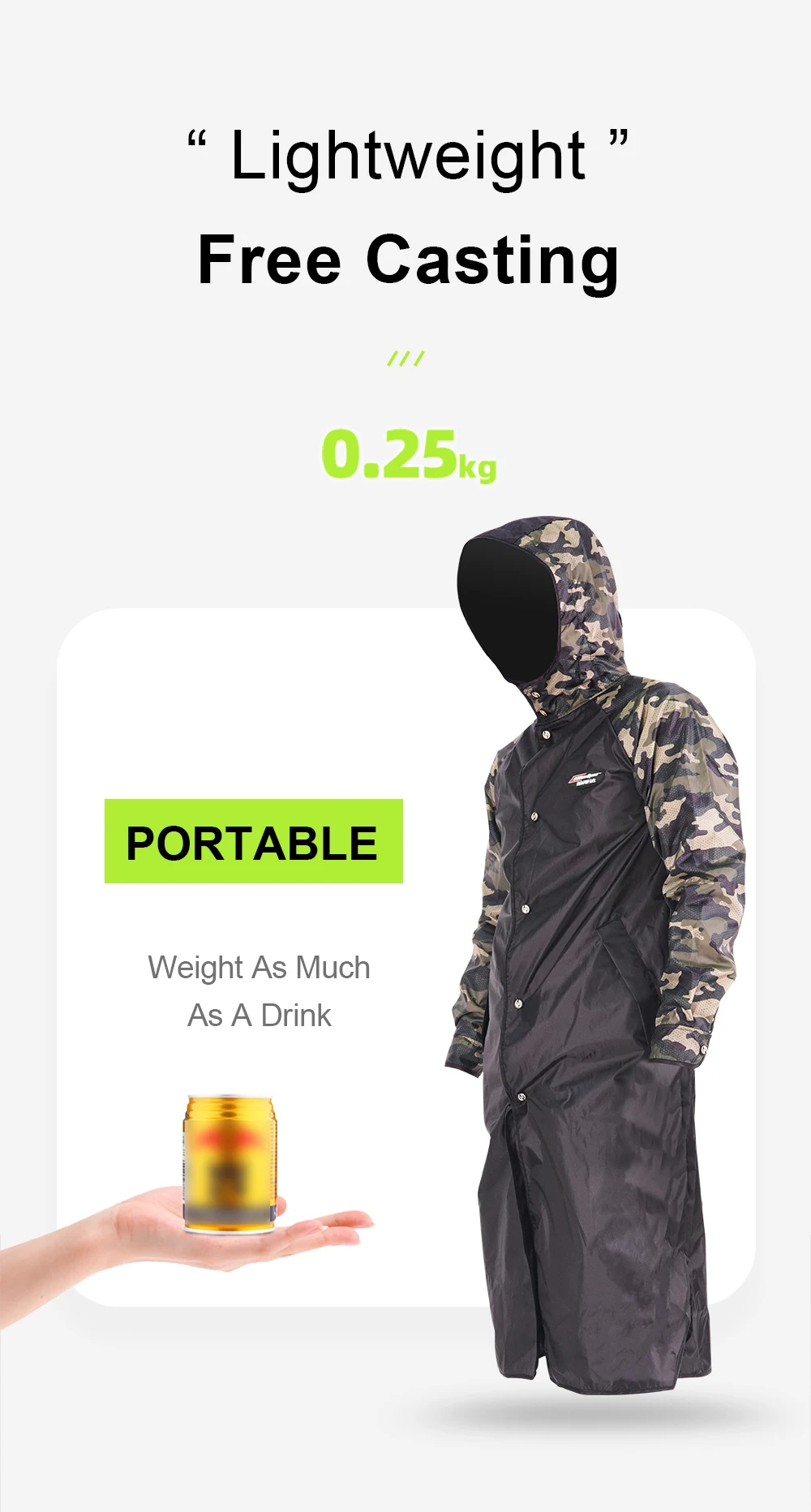 3. El impermeable largo puede cubrir tus piernas: más adecuado para pescar en días lluviosos.