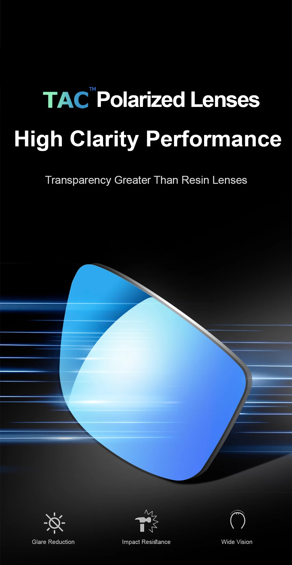 3. Lentes polarizadas TAC, rendimiento de alta claridad, transparencia mayor que las lentes de resina.