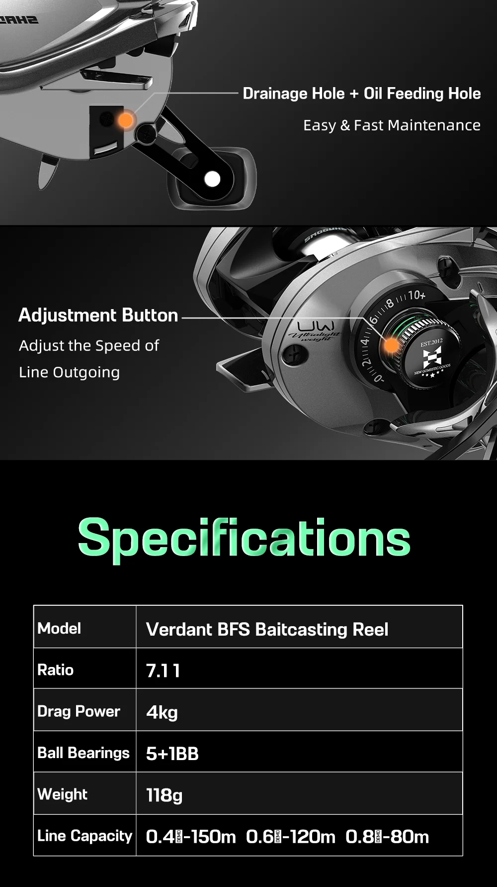 4. Reducir la fuerza de frenado requerida para el control, mango de cebo más ligero, mejorar el rendimiento de lanzamiento largo