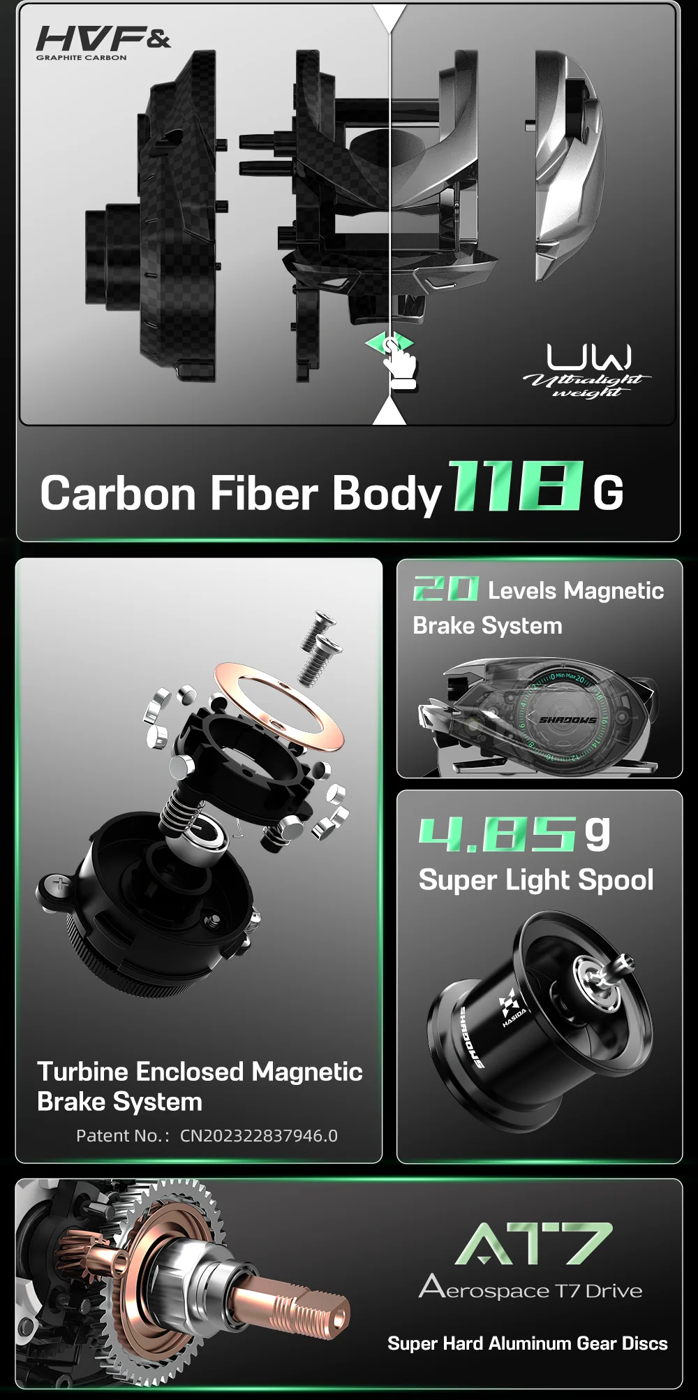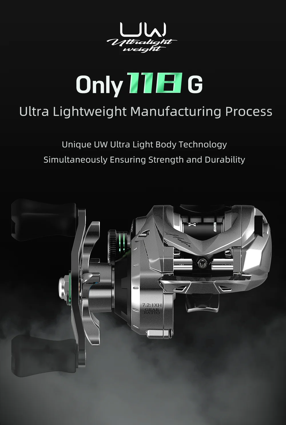 Histar BFS Ultra ligero 118G cuerpo de fibra de carbono Verdant duradero 7,2:1 carrete de pesca Baitcasting de alta proporción 4KG Drag Power
