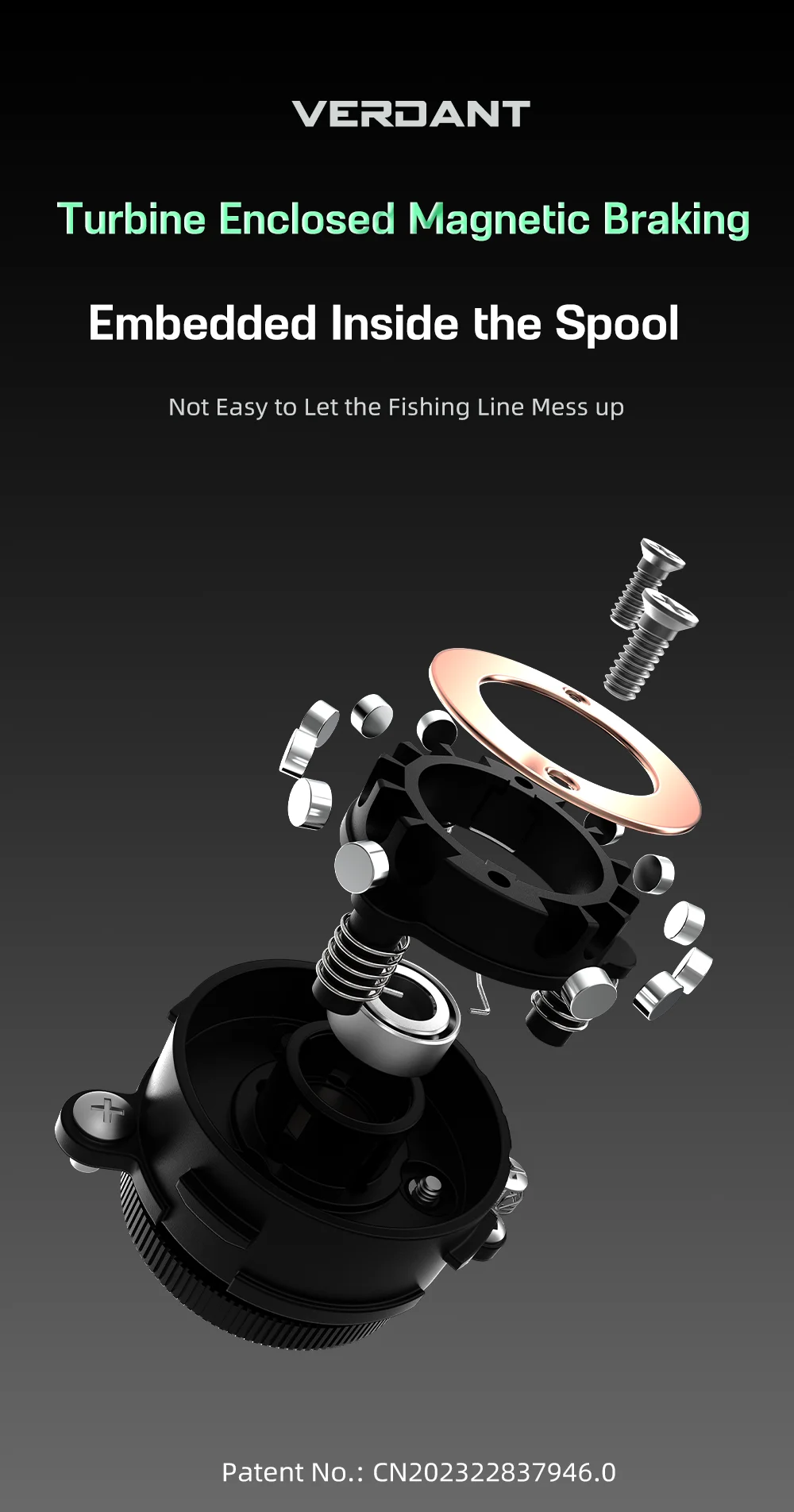 5. Frenado magnético cerrado con turbina: integrado dentro del carrete, no es fácil dejar que el hilo de pescar se estropee