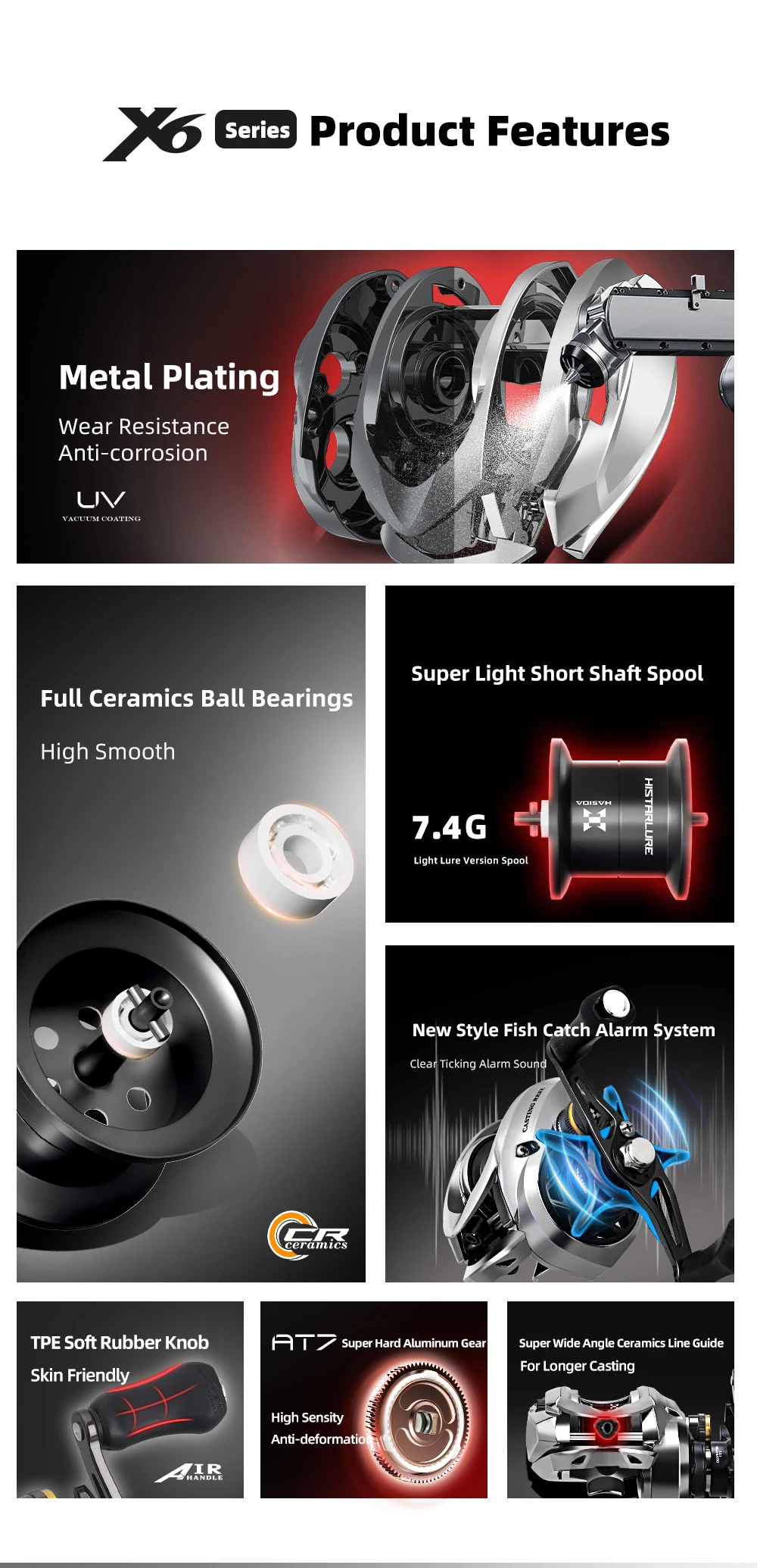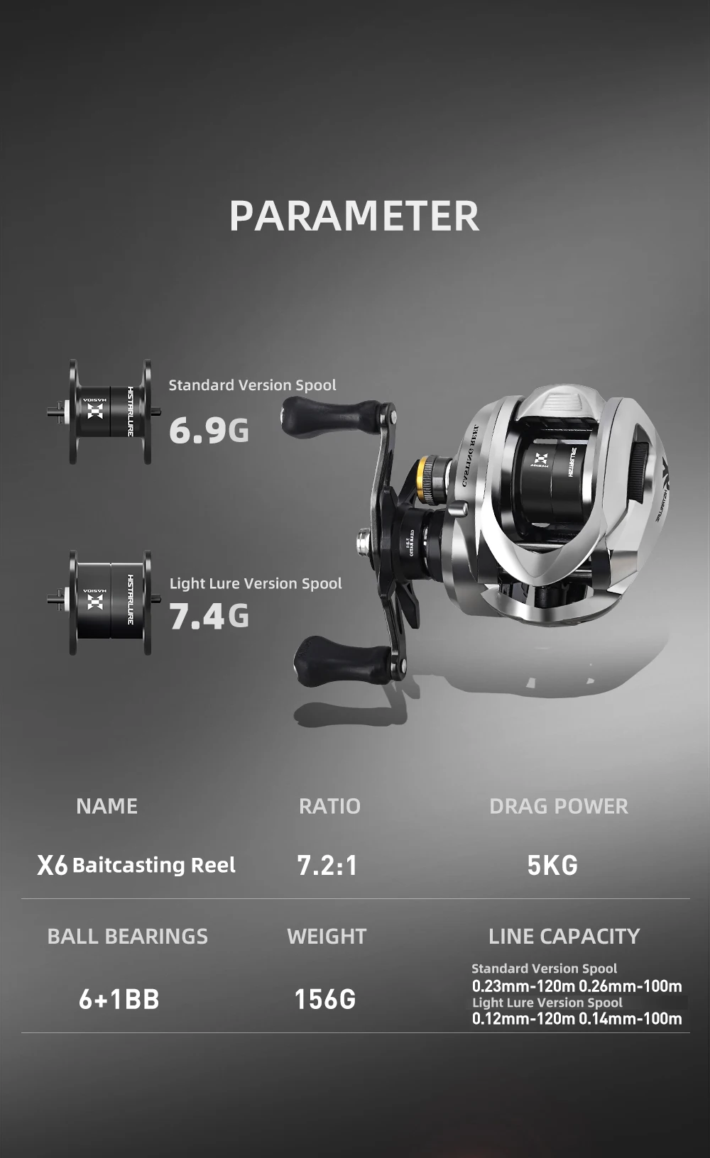 Histar X6 Standard y Micro versión 3 rodamientos de bolas 156g 7,2:1 5kg Drag Power AT7 carrete de aluminio Baitcasting carrete de pesca