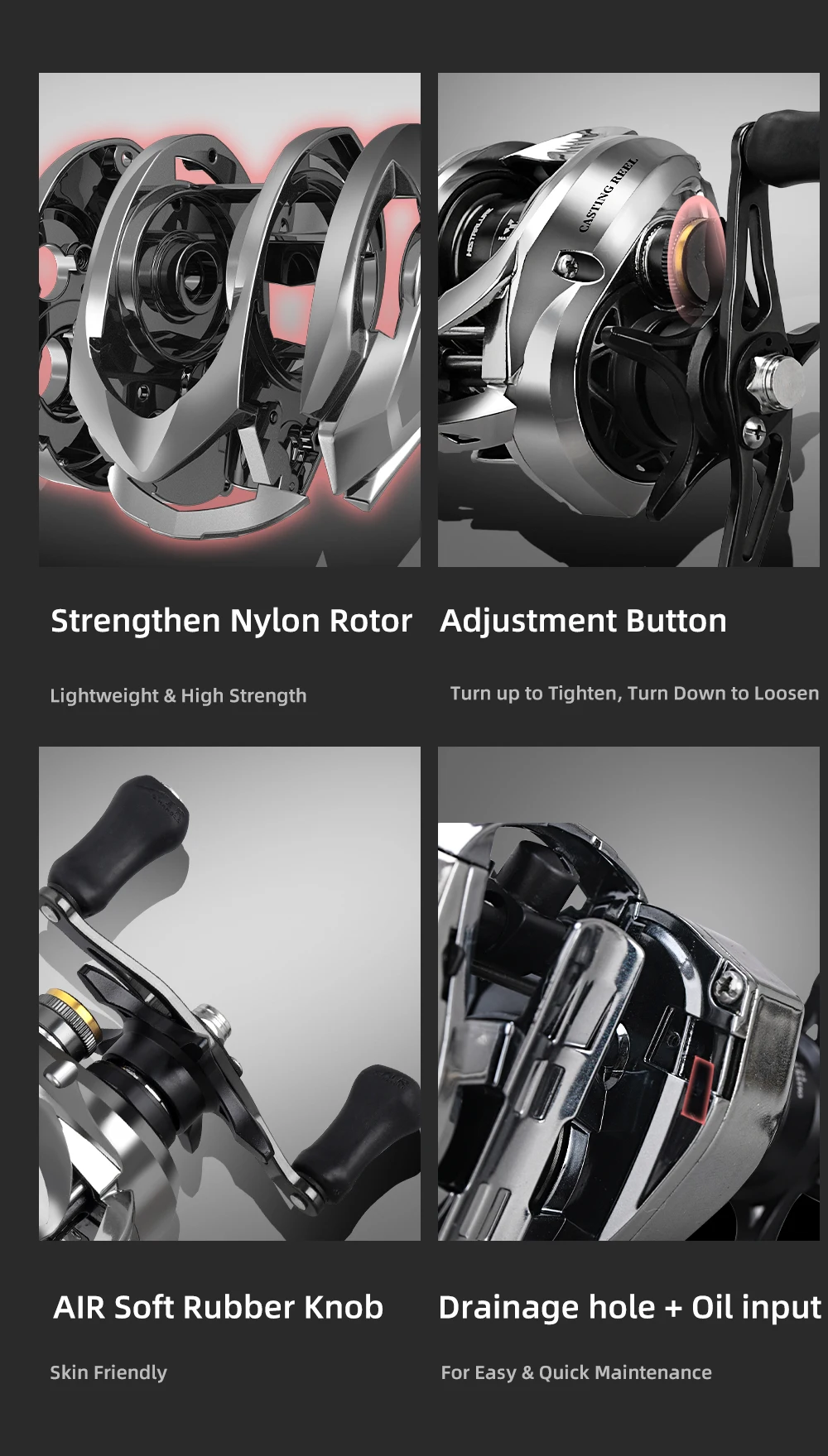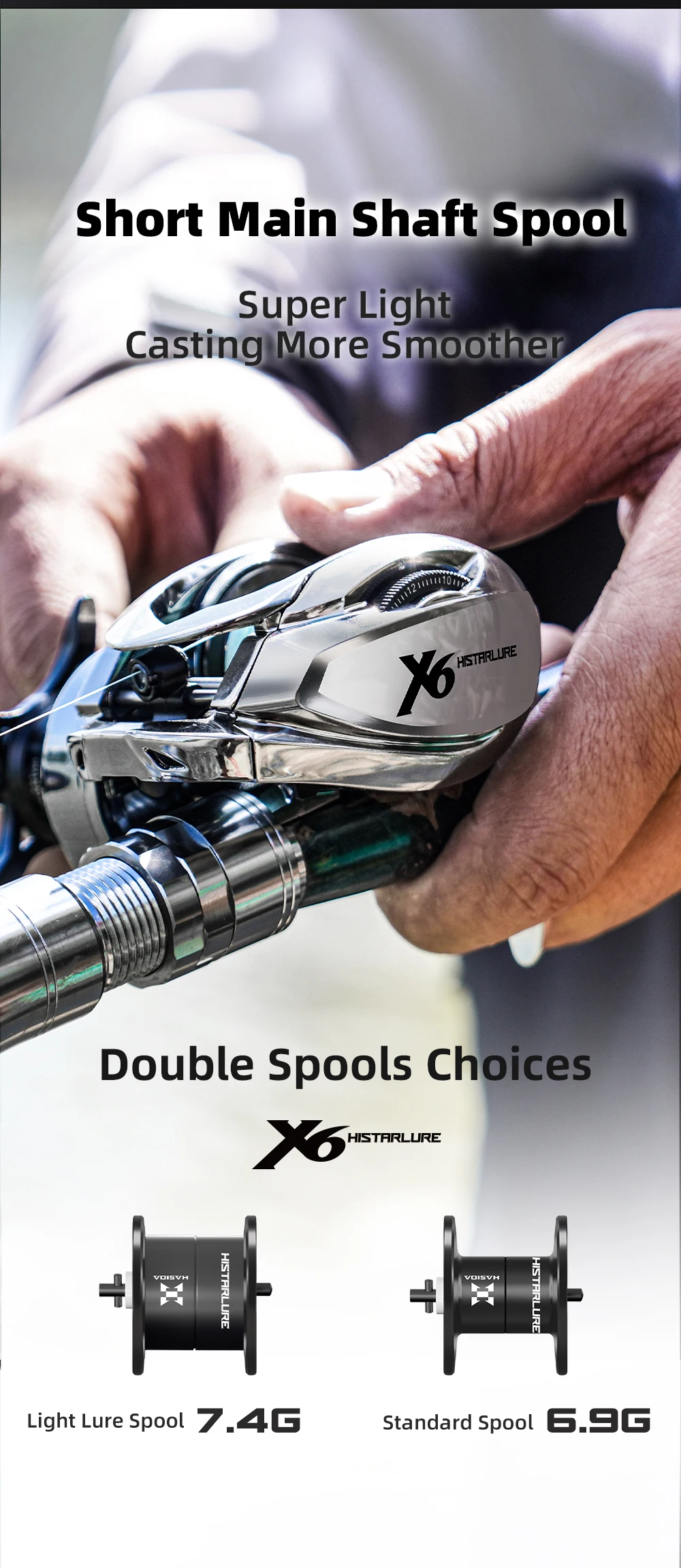 5. Carrete de eje principal corto, súper ligero y fundido más suave.