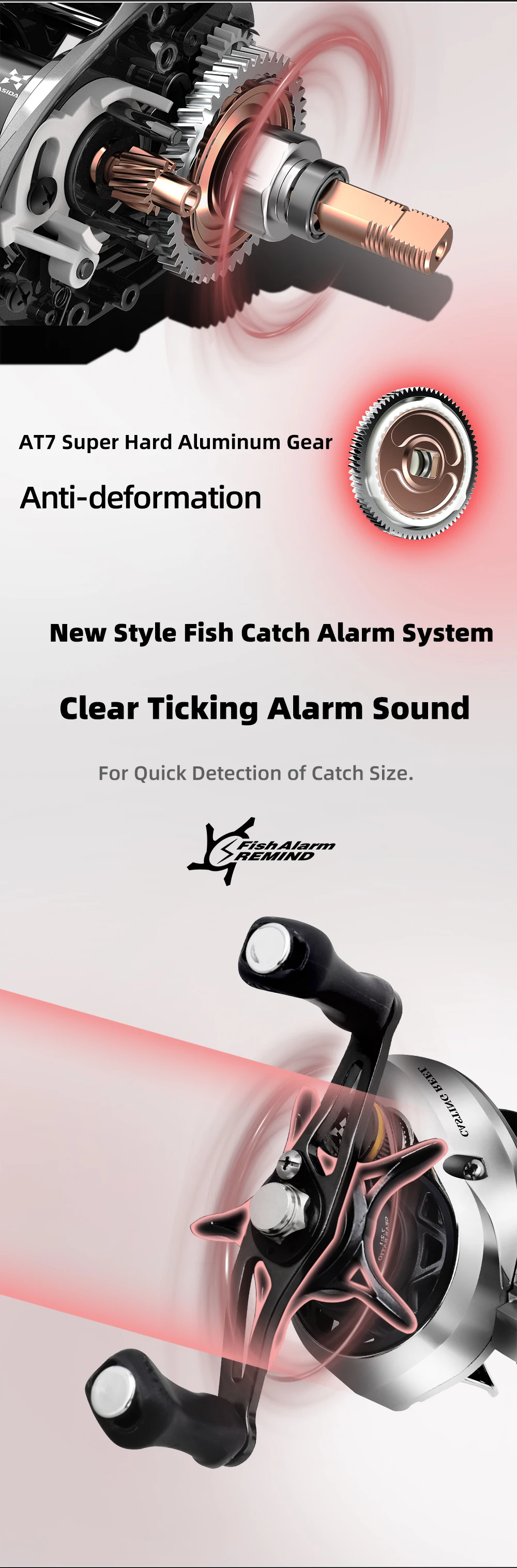 9.Sistema de alarma de captura de peces de nuevo estilo, sonido de alarma de tictac claro para una detección rápida del tamaño de captura.