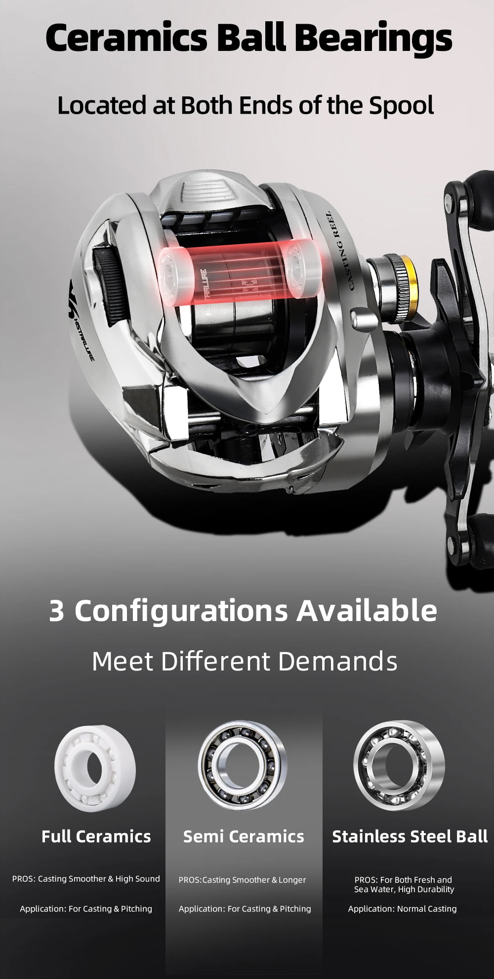 3.Rodamientos de bolas de cerámica ubicados en ambos extremos del carrete.