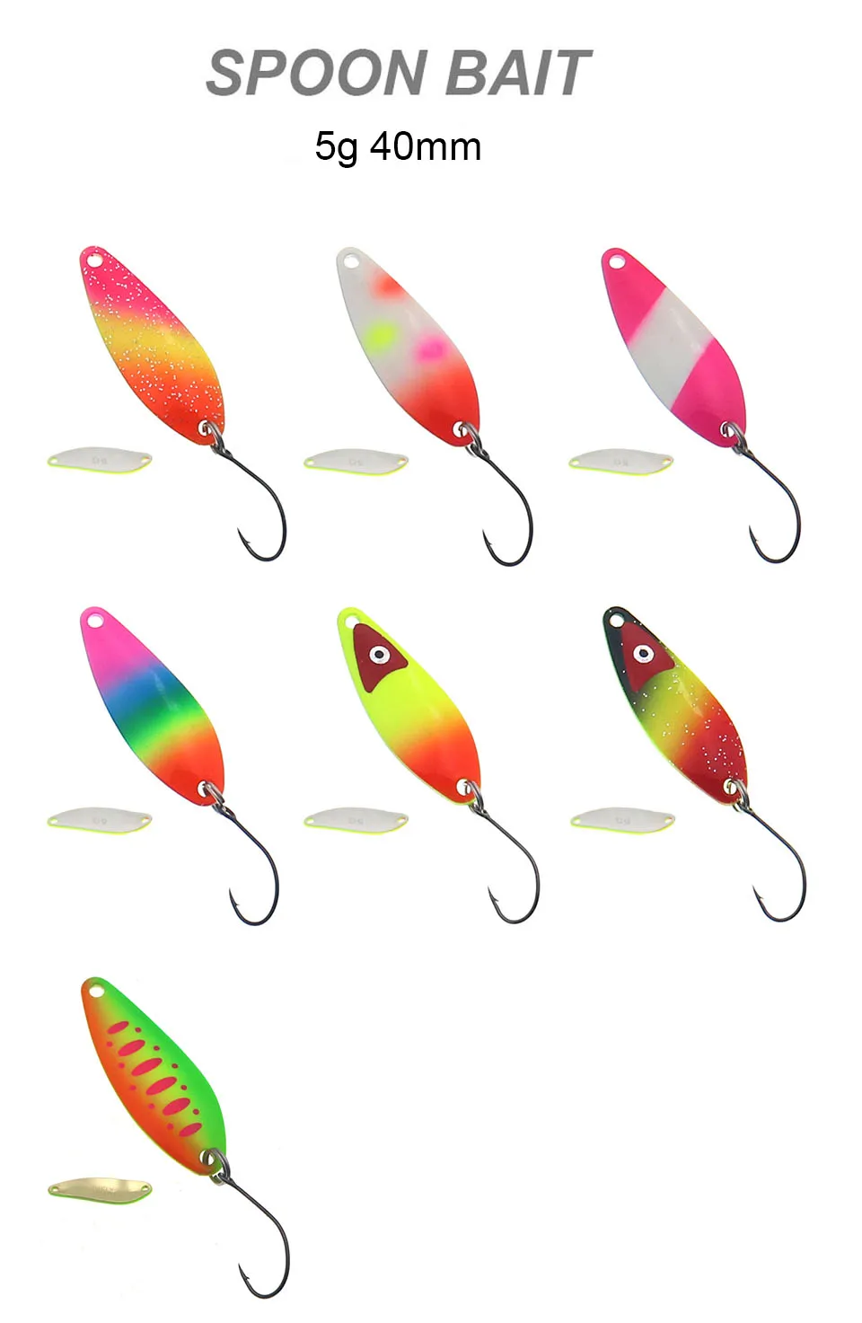 Cuchara de trucha, 4cm, 5g, cebo de pesca, cuchara de pesca, señuelo, cebo, cuchara giratoria de lentejuelas duras