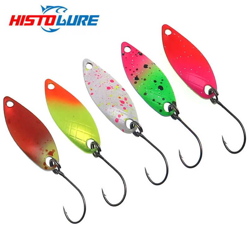 HISTOLURE-señuelo de pesca con cuchara para trucha de latón, 30mm, 1,6g, cebo Artificial con anzuelos afilados, cuchara para lubina, aparejos Pecsa