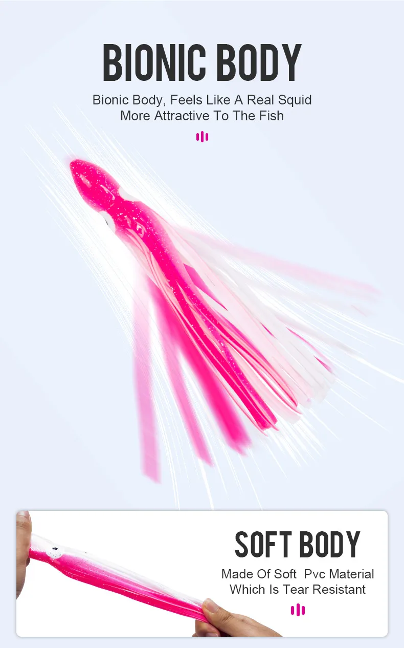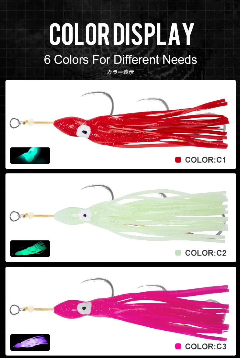 TEASER Jigging Hook Polpo Pesca Señuelo suave Trolling Jig Falda de calamar de goma Artificial Atún aparejo Wahoo Sailfish Halibut Bait