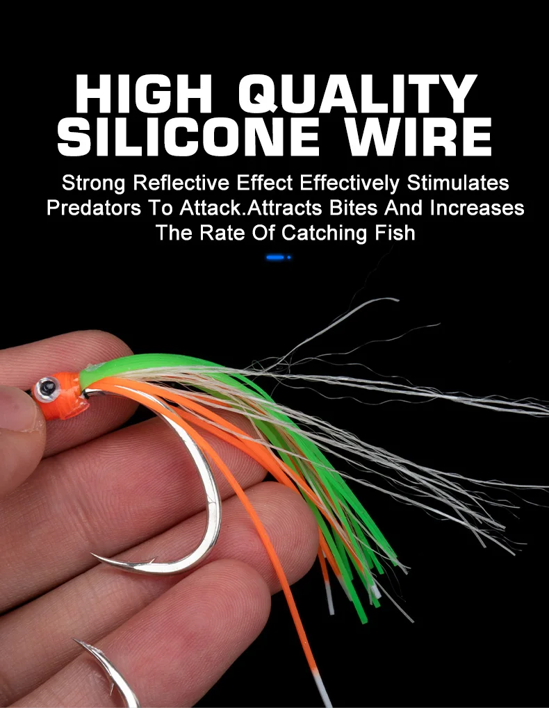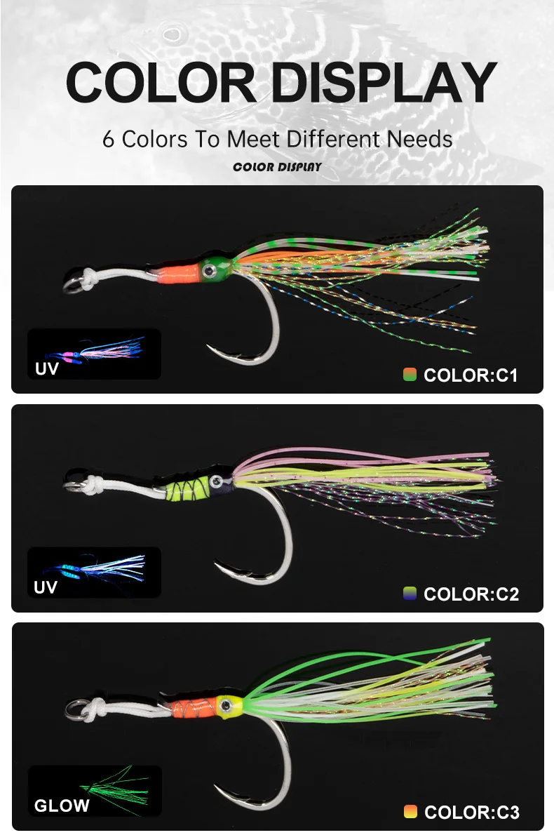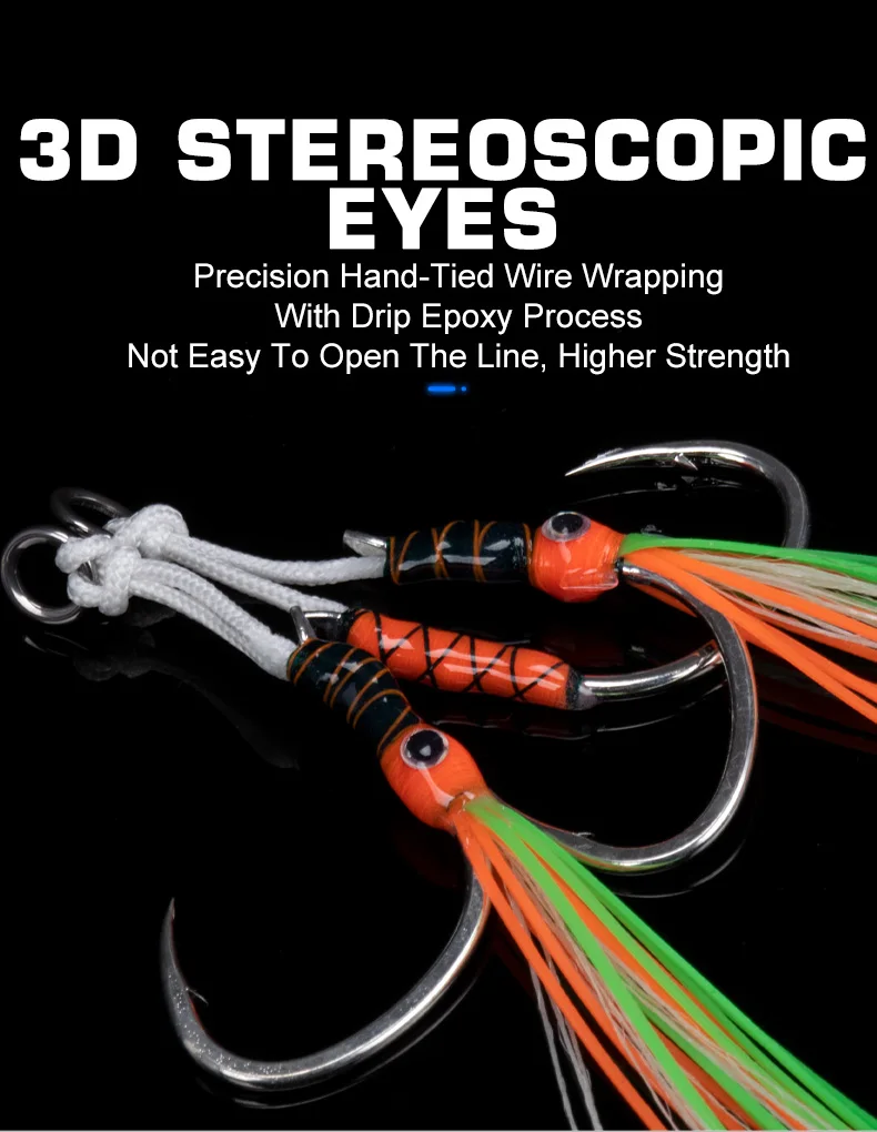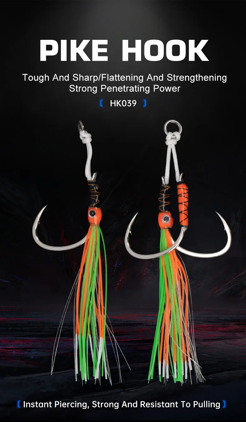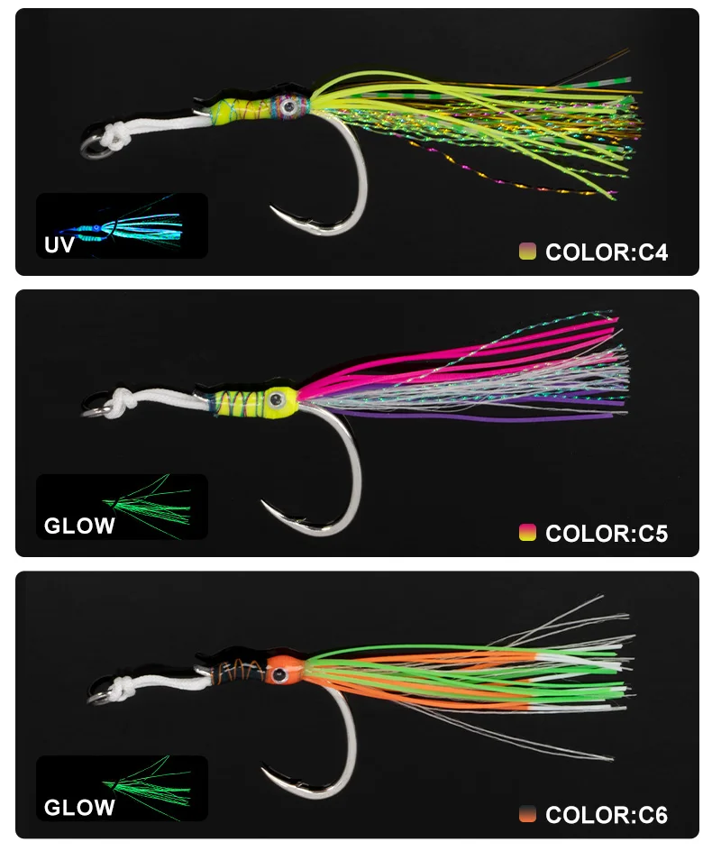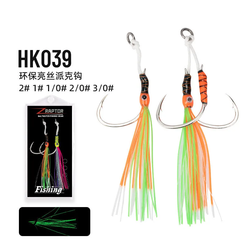 HK039 2 pares de ganchos de asistencia para ojos, gancho de plantilla de hundimiento lento de alto carbono, faldas de goma coloridas, ganchos de púas para barco oceánico con brillo UV