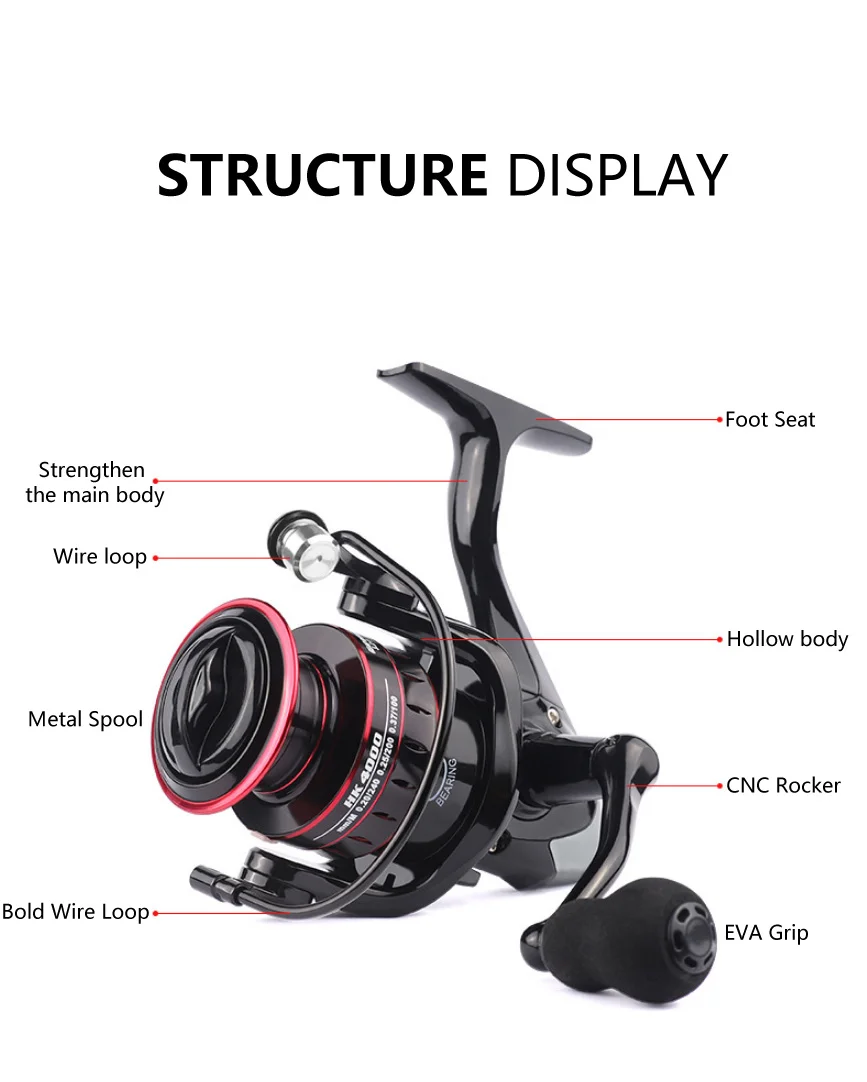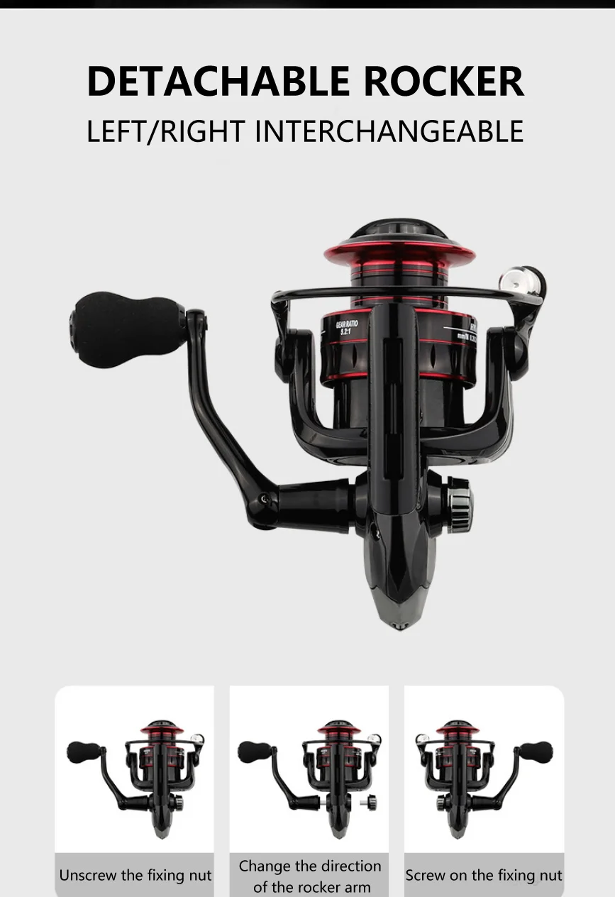 HK1000-7000-carrete de pesca giratorio de fundición de alta velocidad, accesorio para pesca de carpa, agua salada, mano izquierda/derecha, de Metal/EVA, agarre 5,2: 1