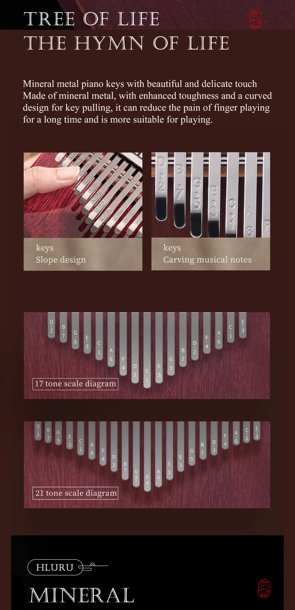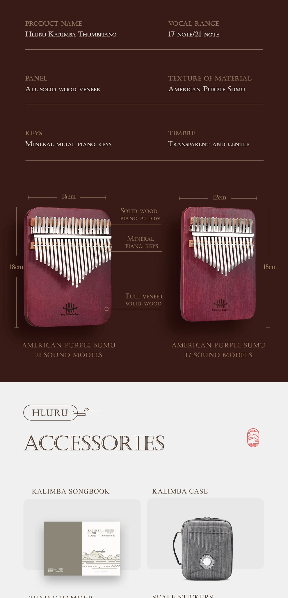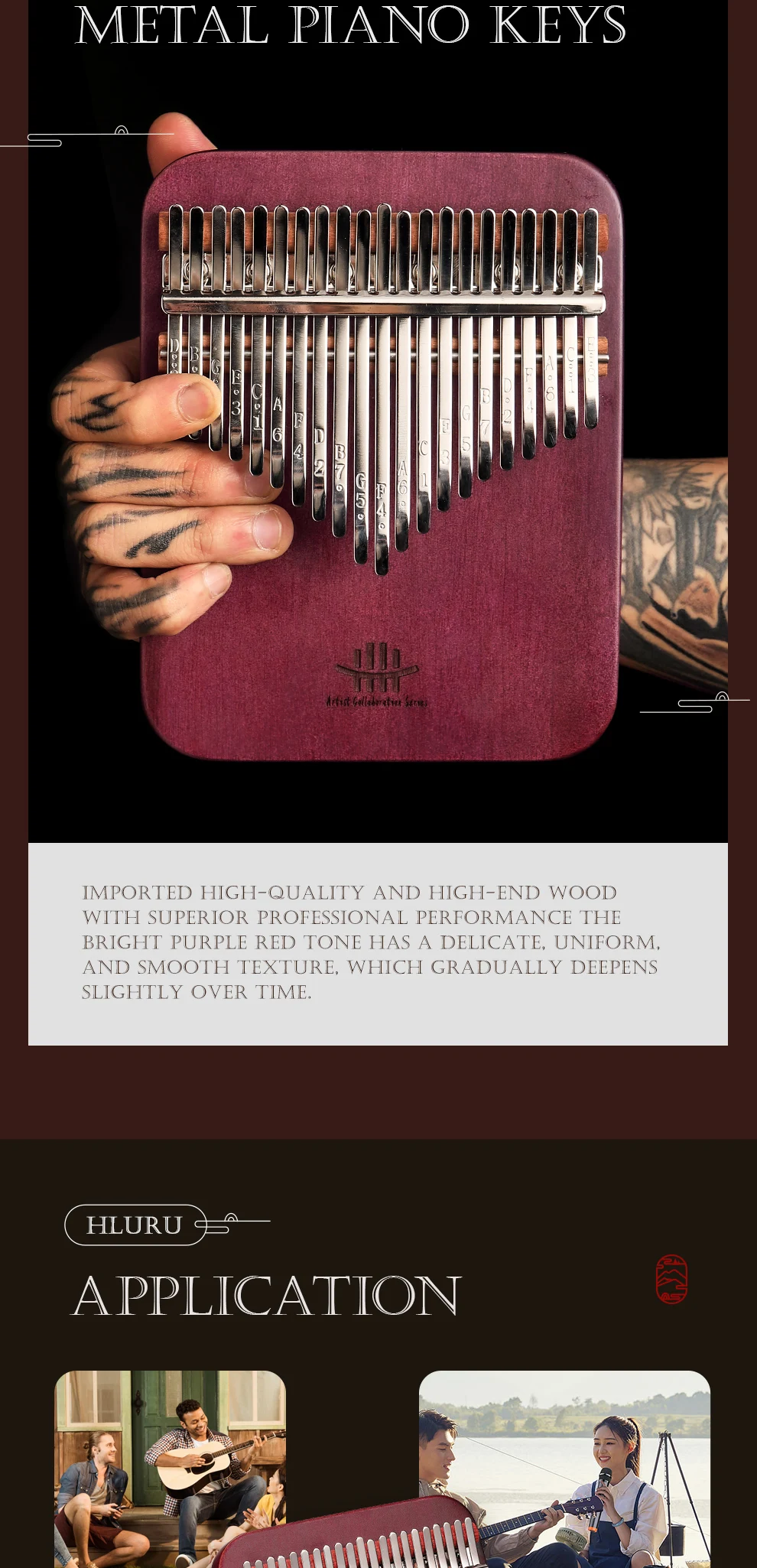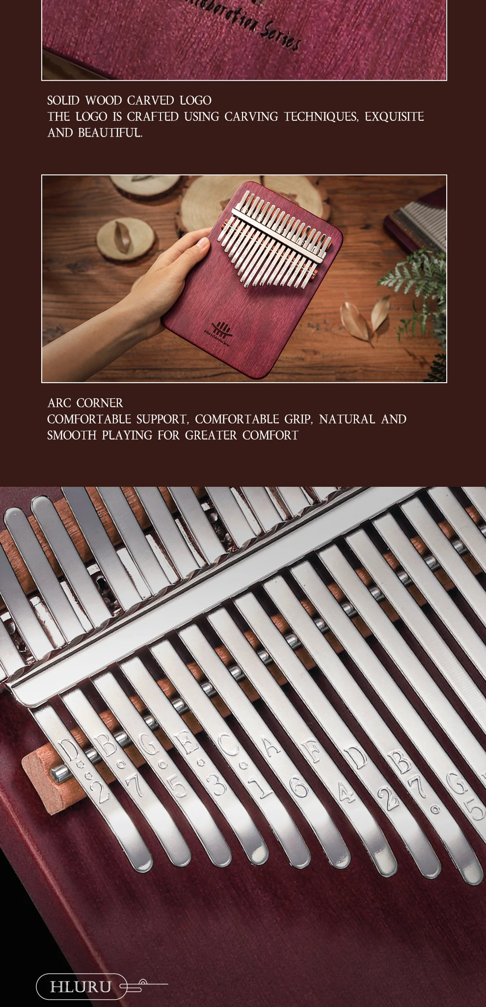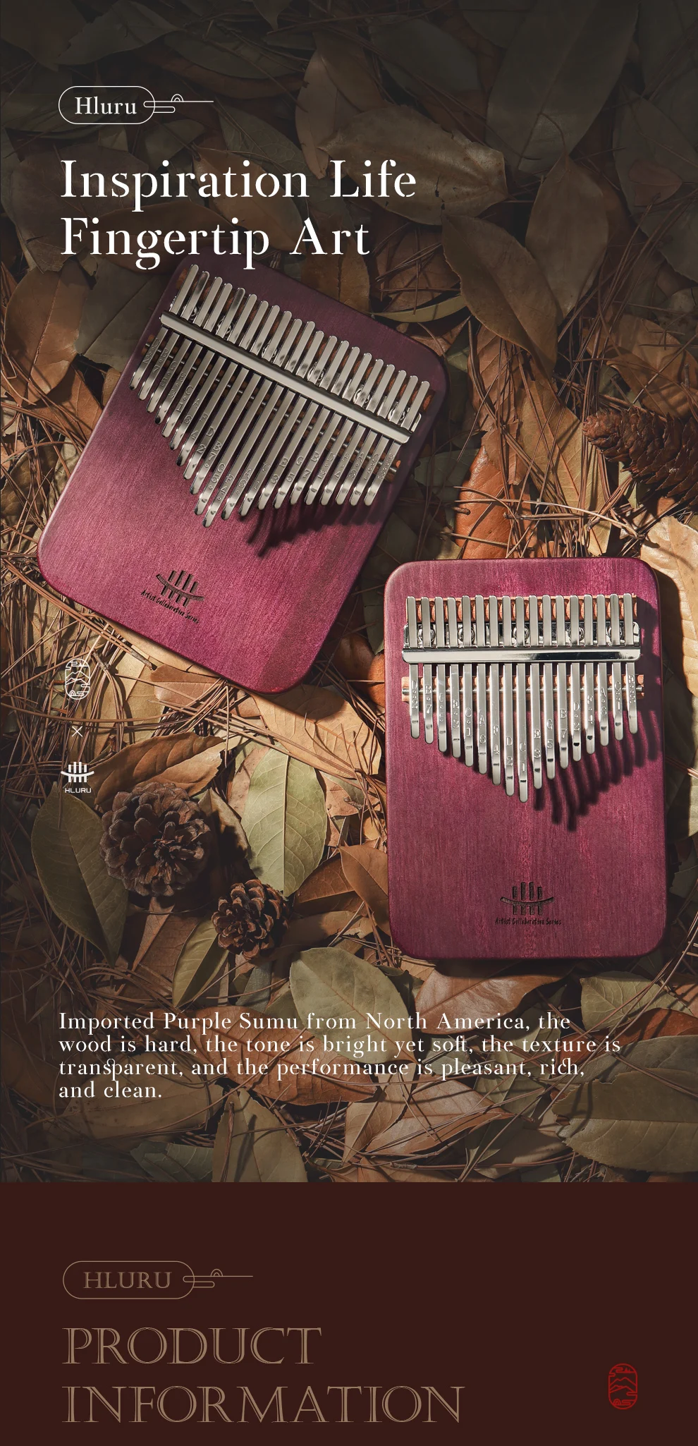 Hluru 21 teclas púrpura corazón tablero Kalimba profesional 17 teclas pulgar Piano dedo Piano totalmente de madera maciza Mbira Kit para principiantes con estuche