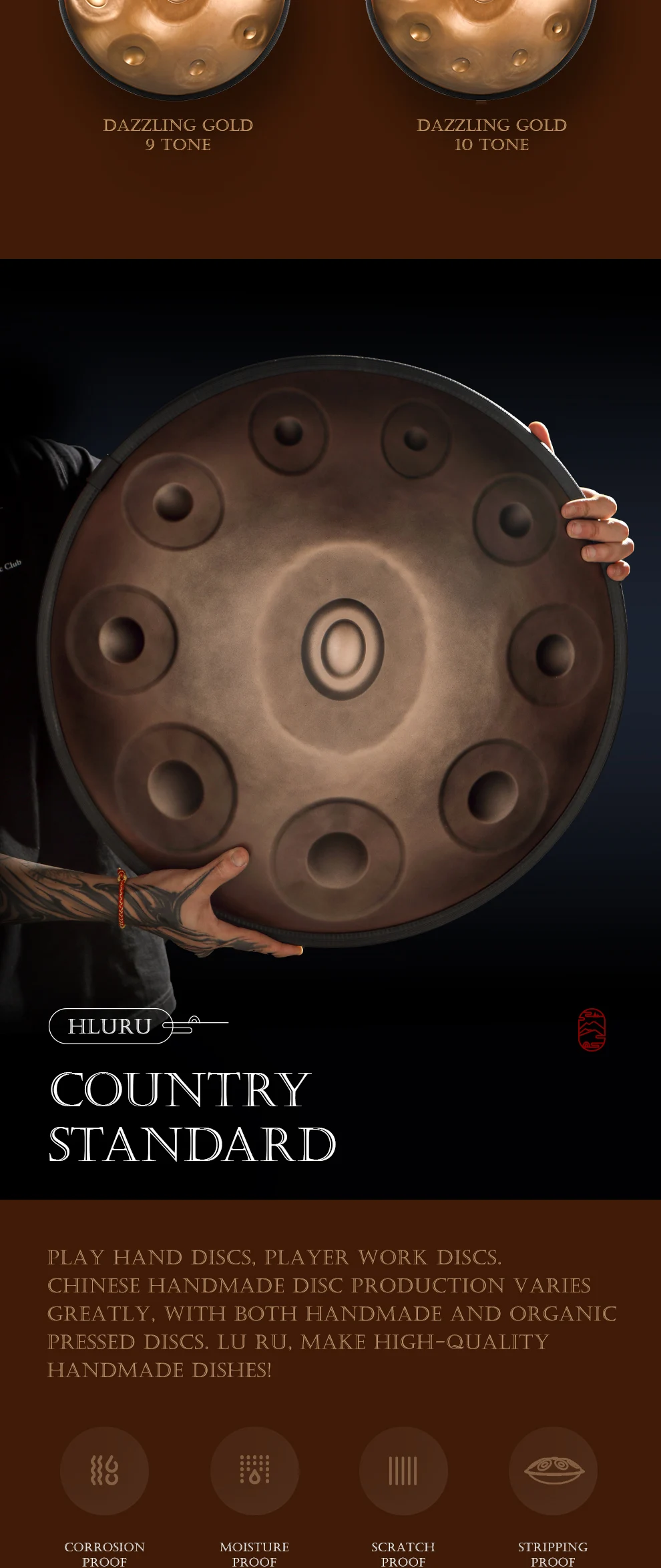 Hluru Handpan 440HZ Pantam Drum 10 notas D menor 22 pulgadas glucófono nitruración mano Pan tambor yoga meditación tambor Musical
