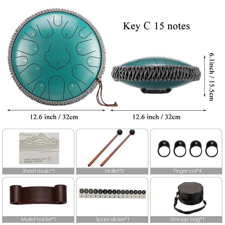 Tambor de lengua de acero para glucófono Hluru, 13 pulgadas, 15 notas, llave de tono C, tambor etéreo, instrumento Musical de percusión
