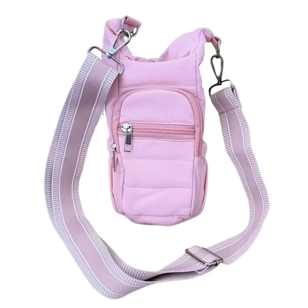 1.Water Bottle Bag: Made of high quality down fabric with adjustable vintage shoulder straps makes this water bottle holder classic yet stylish. The soft and waterproof down filled cotton material has better water and shock resistance while maintaining high softness and elasticity. Not only to prevent the water cup bump, but also wear light. Please note that this crossbody bag cannot be washed or machine washed