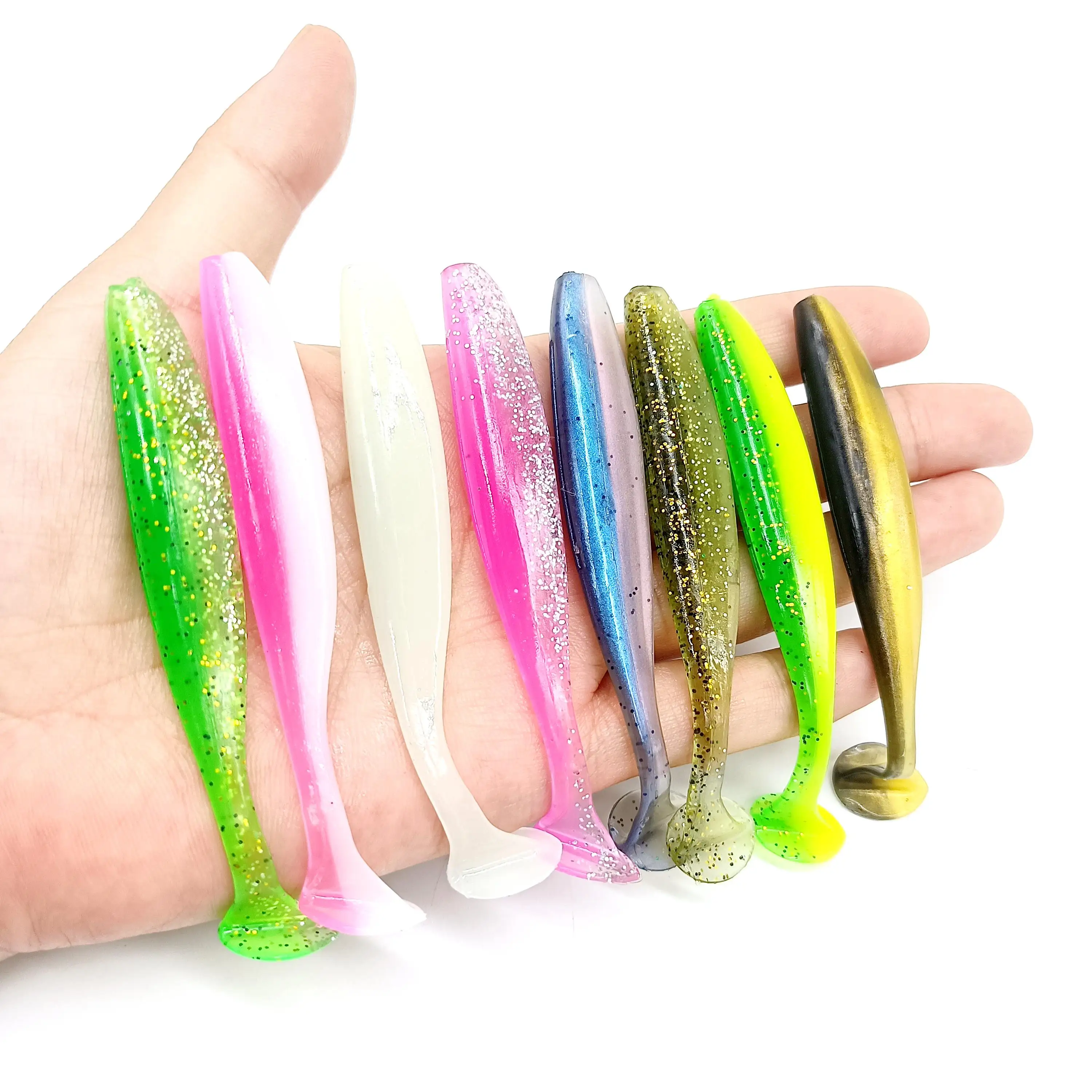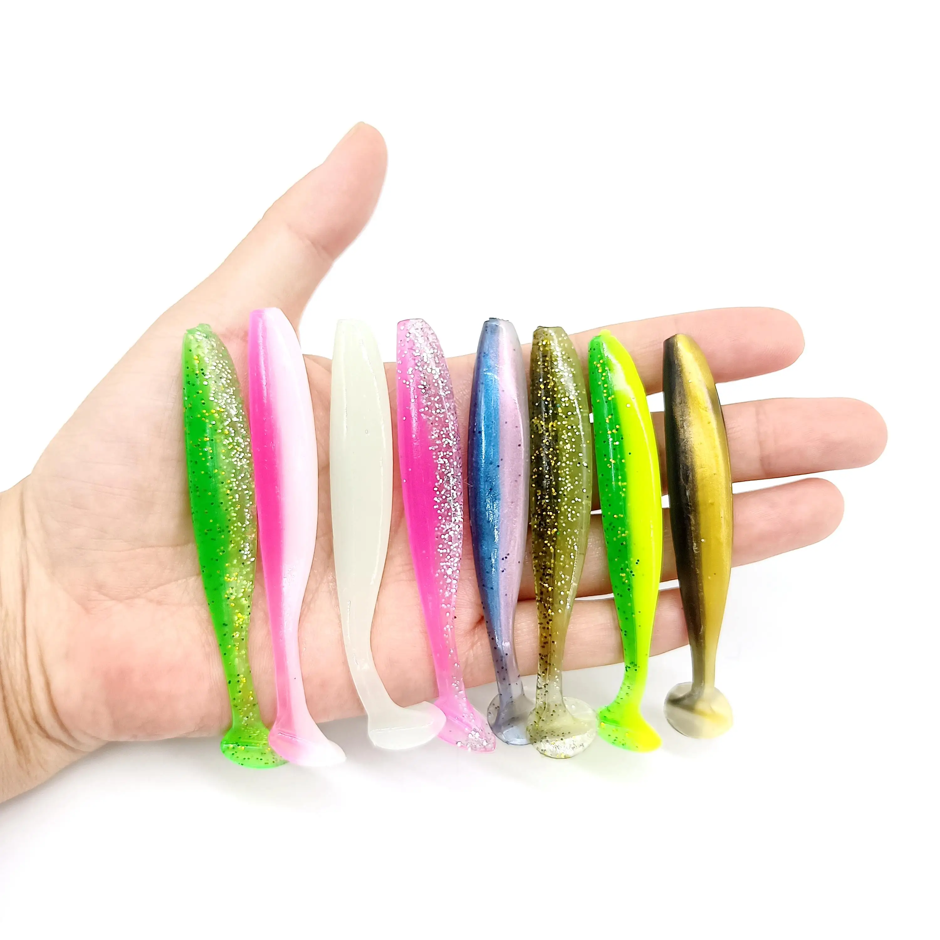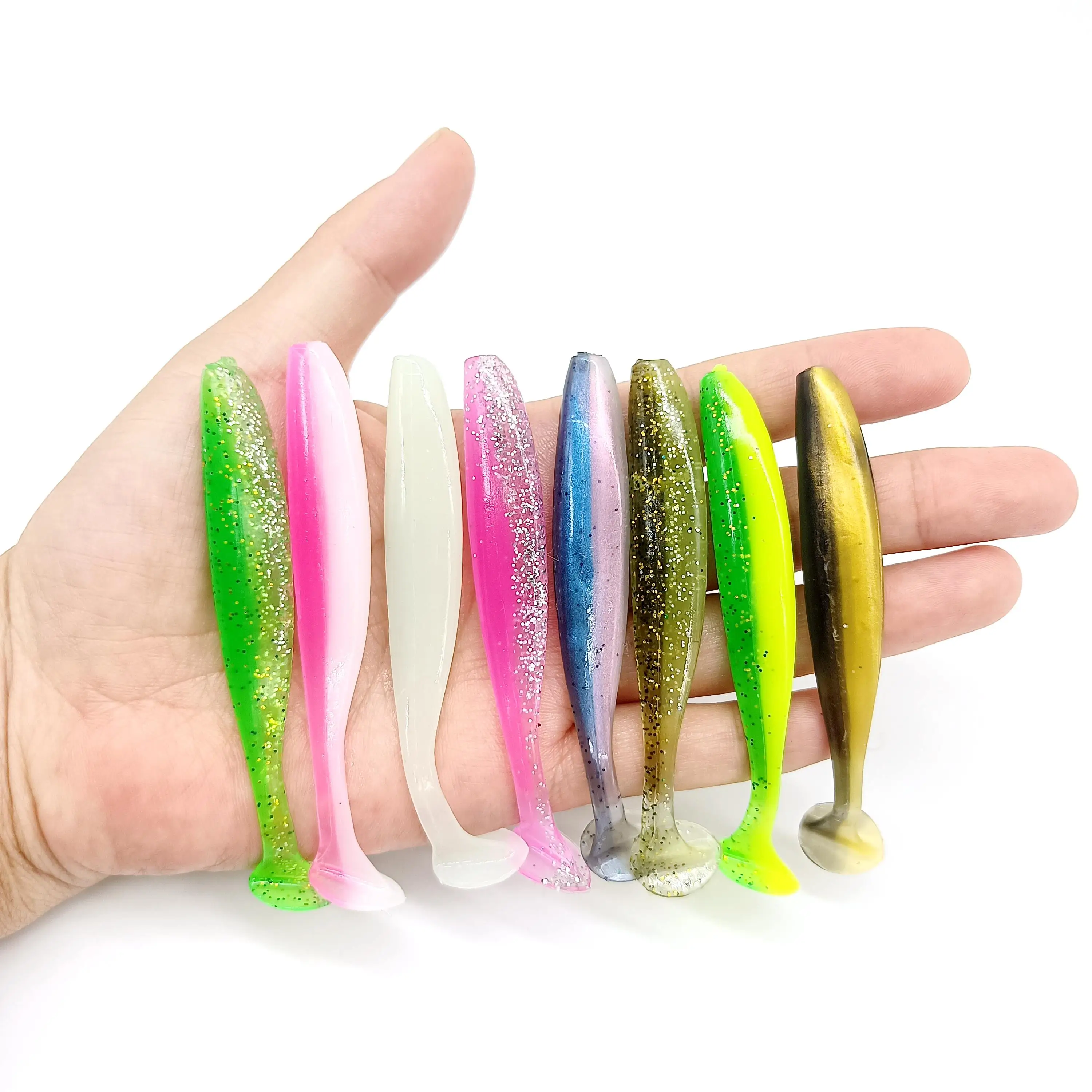 Hookfish-Cebo blando de gusano Sábalo, Jigging de cola en T, Wobblers de silicona artificial, Swimbait, Lucio, aparejos de pesca, 4,2g/90mm, 48 unidades por lote