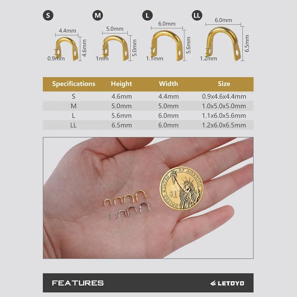 2. Specification: Material--stamped from solid brass,Length--7mm/0.28in,Width--6mm/0.24in,Quantity--50pcs/pack.