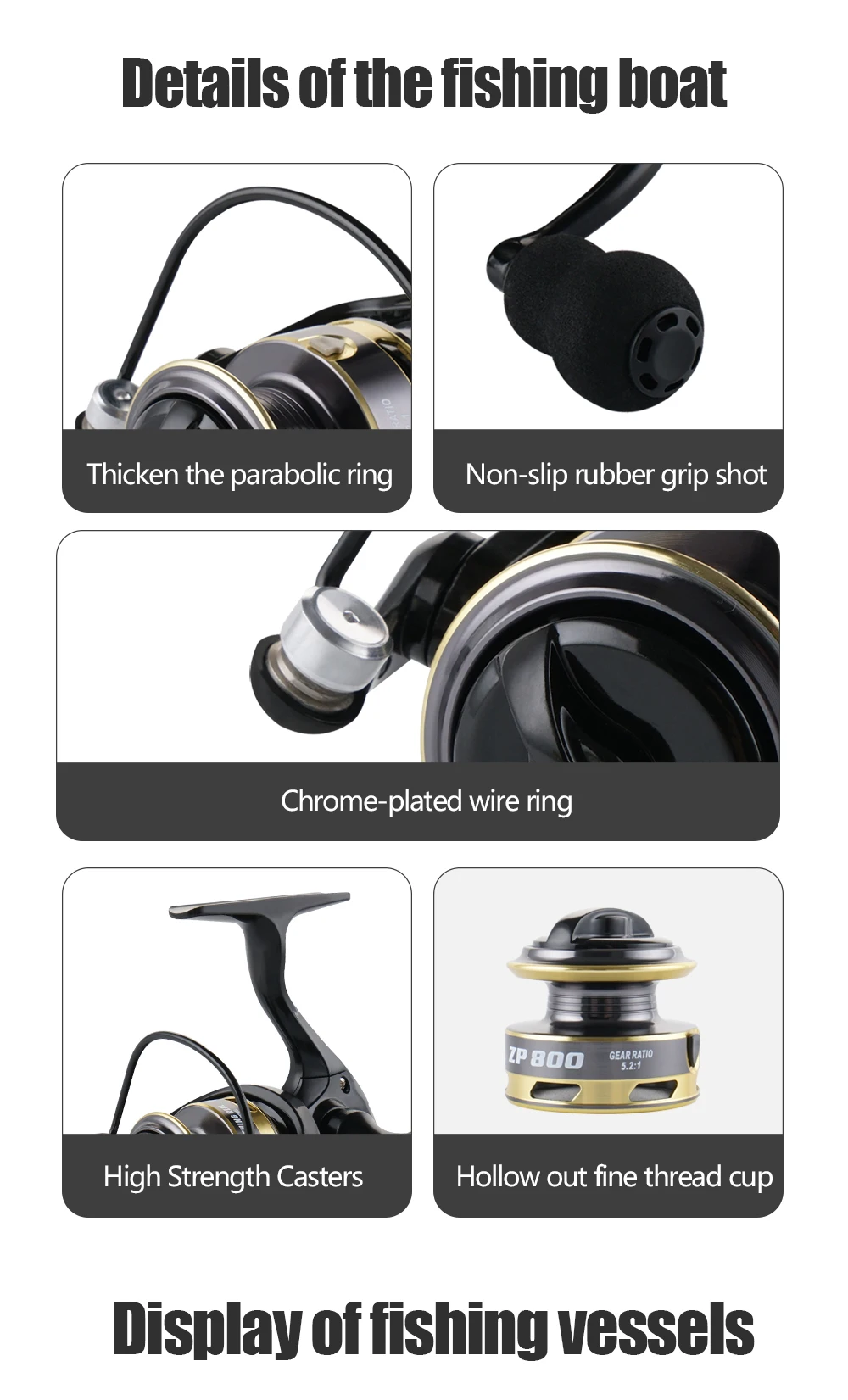 • Carrete de metal: El carrete de metal es duradero y resistente a la corrosión, lo que garantiza que su carrete durará años.